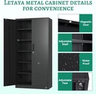 ** Only ships to Continental US; -Not ship to Alaska, Hawaii, Puerto Rico, U.S. Virgin Islands, American Samoa, Guam, Po Box/APO, etc ** - Metal Garage Storage Cabinets with Lock-72 Tall Tool Organizer Steel Lockers, 5 Adjustable Layers Shelves for Home,Office,Warehouse,Garage, - Size: 72 X 36 X 18 In(H X W X D) 『High-Quality Metal』: Letaya metal storage cabinet with whole-in-one reinforced heavy gauge steel deluxe welded frame, 2 locking doors are also strengthened by with additional steel bars, whole steel frame thickness up to 0.8 mm, rugged and not easily deformed, plate adopted environmentally powder coated finish, Moisture proof,capacity to resist corrosion and rust,Can be used for a long time. 『Large Storage Space』: Steel storage cabinets H72 * W36 * D18 inch , features 5 adjustable shelves, 6 floors in total, shelves can hold up to 180 lbs, which is very suitable for storing office documents supplies, garage tools or other large and heavy household items, ideal for long-term to use. 71-inch counter height perfect for use in homes, offices, garages, schools, shops, warehouses or other commercial spaces. 『Professional Design』: Metal cabinet adopts an upgraded version of the three-point lock system, and the steel rods are thickened to provide higher security for your valuables and important items;anti-collision reinforcements, keeping quiet while protecting when you opening or closing the door;Adjustable feet can ensure the balance of the metal cabinet in various environments;pre-holes on the back, enable to be mounted to the wall. 『Packaging Protection』: Letaya storage cabinet package uses a lots of foam and reinforced metal corners protect the edges from getting dented, to prevent damage to the panels during shipping.Of course, in the unfortunate event of an damage,please contact us in time for processing problem.(Note: ferrous metal corner guards are not part of the product) 『Assembly Instructions 』: Metal storage cabinets provide paper and video assembly instructions.