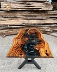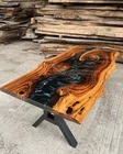 Handle Material: Resin Indoor/Outdoor: Indoor & Outdoor Item Weight: according to customize Number of Drawers: N.A. Item Width: 36 in Style: Art Deco Department: Adults Shape: Rectangular Packaging: Export Packing Material: Wood Type: Dining Table Pattern: Solid Product Line: Home & Office Tabletop Material: Wood Assembly Required: No Country/Region of Manufacture: India Model: Handmade Epoxy Tabe Maximum Length: 72 inches Additional Parts Required: No Item Height: 0 Brand: Handmade FSC Certified: No UPC: Does not apply Time Period Manufactured: 21st Century (2000-Now) Tabletop Thickness: 1.25 in Handle Finish: Polished Finish: Polished Care Instructions: Easy Care MPN: 10015 Item Length: 72 in Features: Live Edge Wood gtin13: Does not apply Room: Bedroom, Dining Room, Home Office/Study, Kitchen, Living Room, Porch Required Tools: No Tools Required Year Manufactured: 2024 Color: Blue Personalized: Yes Original/Reproduction: Original Wood Tone: Medium Wood