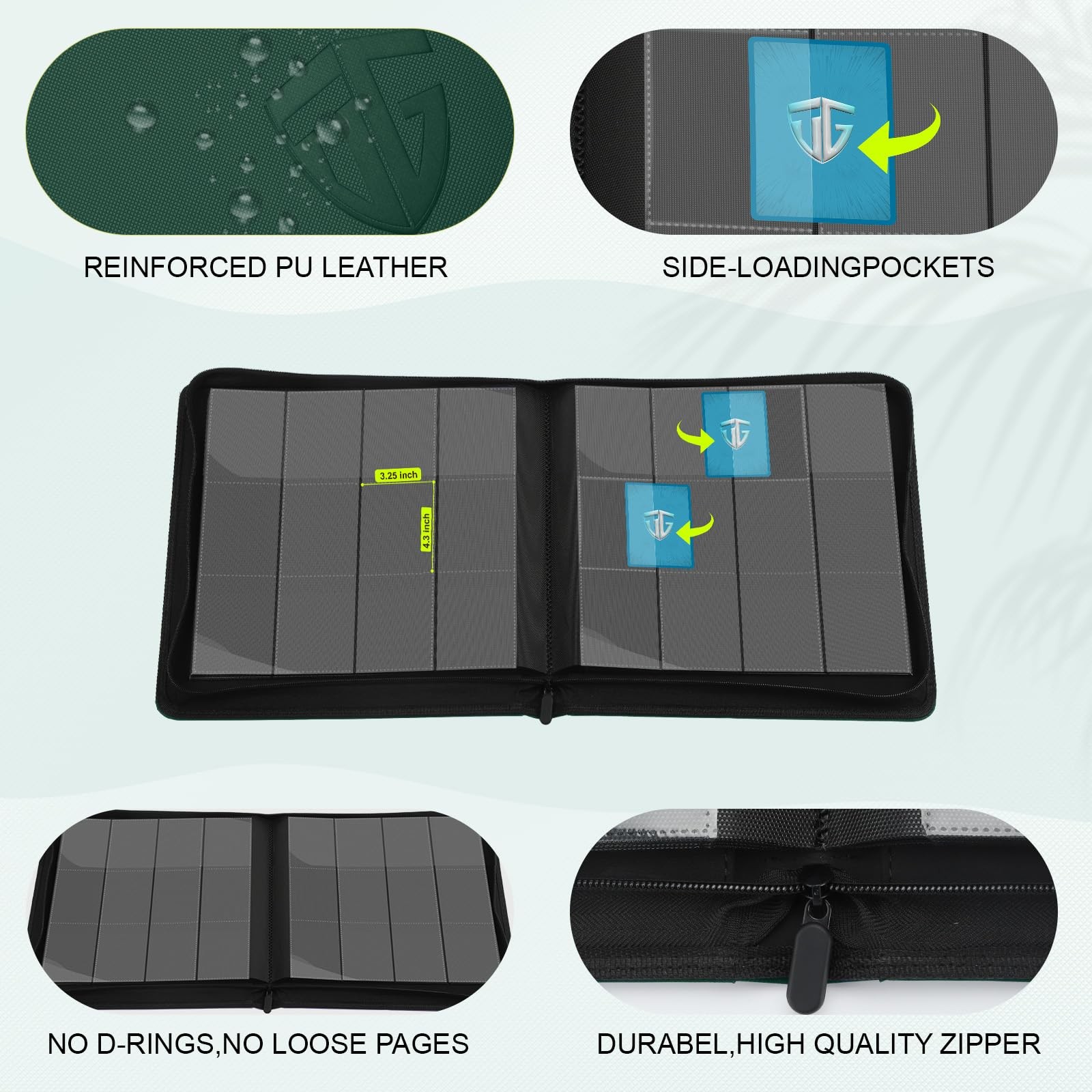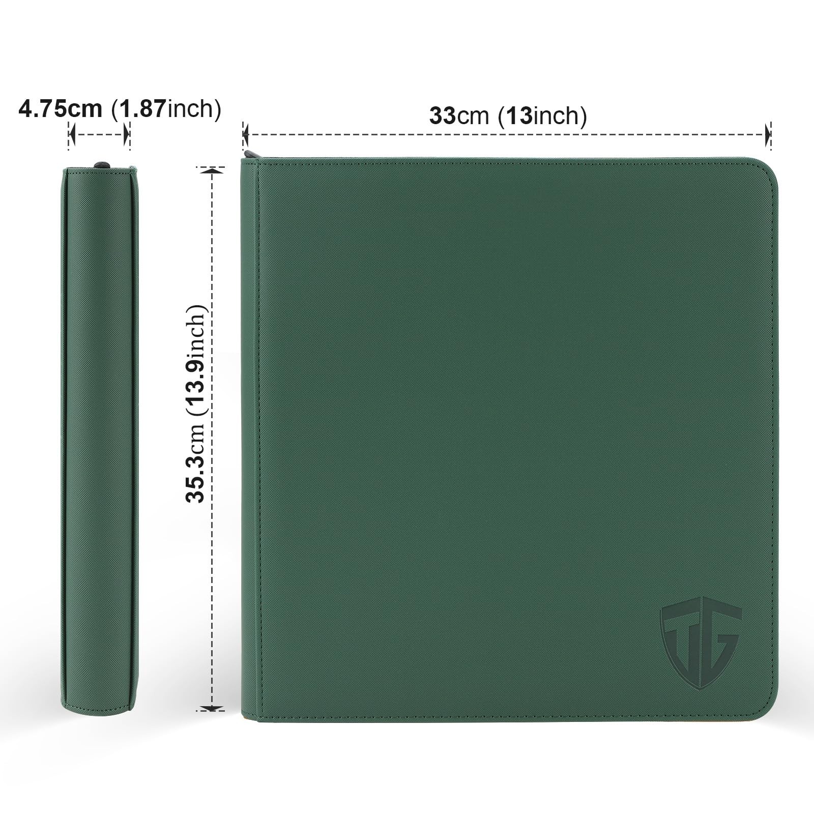 TCGAURD Trading Card Business Binder Premium PU Leather Secure Storage: Soft PU shell and smooth zipper, waterproof and shockproof. Clear polypropylene of the card pockets, acid-free, sturdy to keep cards from bending up. TCGAURD card binders provide secure way for cards from fading and stain. Suitable Capacity: 720 card pockets ( double-sided/12 pockets per page) meets your daily card storage. 3.6"*2.75" pocket size fits all your TCG cards and cards with sleeves on them, compatible with baseball cards, yugioh cards, football cards, ultra pro cards,etc. Easy Access: side-loading pocket design for easy access without fall out accidentally. Transparent pocket of the zipper binder for trading cards clearly displays your cards and enables quick access, which makes card game together more happy. Design Advanced: Comfortable feel, personalized colors and logo, exquisite workmanship, make the card binder for you hard to put down. 13.9*12.9"*1.96"size is more suitable for card organizing and easy to carry TCG cards everywhere with you. Ideal Gifts: This 12 pocket card binder combines popular appearance design and practicality. On special days, it can be given as a memorable gift to family, friends, and yourself. TCG binder, guard your trading cards and guard your happiness.