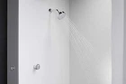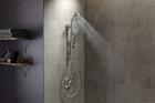 The Awaken showerhead brings quality, design, and performance to your bath. Advanced spray performance delivers three distinct sprays - wide coverage, intense drenching, or targeted - while an ergonomically designed thumb tab smoothly transitions between sprays with a quick touch. The artfully sculpted sprayface reveals simple, architectural forms that complement contemporary and minimalist baths. Multi Function Shower Head: 3-spray showerhead includes wide coverage, intense drenching and targeted spray; shower head high pressure targeted spray that is ideal for everyday use, 1.75 gpm (6.6 lpm) flow rate., Polished Chrome Easy to Use, Easy to Clean: shower head features a thumb tab that allows you to transition between spray modes with ease; chrome showerhead comes with a finish that resists corrosion and tarnishing, and a MasterClean sprayface that is easy to cleanse, helping prevent mineral buildup Easy to Install Shower Head: Upgrade your shower system with this multi function shower faucet that easily attaches to a standard 1/2" 14 NPT inlet connection Additional Hardware and Equipment Needed: Shower head does not include shower arm and flange, which are sold separately EPA and CEC Certified Shower Heads: shower heads are WaterSense certified and meet EPA criteria, this product is also registered with the California Energy Commission (CEC) (5.24.18)