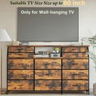 Product Description About this item 72”W Extra Wide Fashion Dresser: This dresser for bedroom size is 72"W x 13.4 "D x 46"H. The upper small drawer measures 22"W x 5.9"D x 4.9"H, and the large lower drawer measures 22"W x 12.9"D x 9.8"H. The extra-wide dimensions and unique design of the style will meet all your storage needs! Sufficient Storage Space: The dresser has 4 medium drawers and 9 large drawers, which are easy for you to categorize and store all kinds of items to meet your various storage needs.The design of the 2-tier open shelves allows you to place decorations, cosmetics, and other frequently used items on the tabletop for easy access, so that your room is always in perfect order. Stable & Durable: The dresser is made of sturdy metal frame and durable wood, capable of providing stable support. The drawers are made of high quality fabric and MDF wood that won't bend easily. Each drawer has an easy pull handle that allows you to open and close the drawer smoothly. Comes with an anti-tip kit to prevent the living room dresser from tipping over. 6 adjustable feet are designed for uneven floors and also protect the floor from scratches. Easy to Assemble: All the tools and accessories needed for quick assembly are included in the package with detailed instructions, it only takes about 30 minutes to assemble the dresser organizer Multifunction Storage Dresser: This dressers & chests of drawers can be used as a storage table or dresser, placed anywhere you want to store clutter, such as bedroom,behind the sofa, closet, hallway, living room and so on. 72" Dresser for Bedroom
