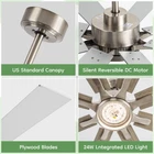 Experience superior air circulation and ambient lighting with this 72-inch ceiling fan, perfect for large indoor and outdoor spaces. Featuring a modern industrial design with 8 dual-finish blades and a powerful DC motor, this fan delivers exceptional performance while adding a stylish touch. The included light with 5CCT (Correlated Color Temperature) settings allows you to customize the ambiance, ranging from warm to cool white. Easily control the fan speed and light settings with the convenient remote control. Rated for damp locations, this versatile fan is suitable for bedrooms, living areas, patios, gazebos, porches, and even garages. With its large size and impressive airflow, this ceiling fan ensures optimal comfort and energy efficiency in expansive rooms or open-air environments. 72 INCH MODERN CEILING FAN: This big ceiling fan with light includes 10”, and 24“ down rods, making it a versatile choice for both low and high ceilings (12-32 inches high). Its stylish fan blades feature a sleek dual-color design in silver and light oak, perfectly blending industrial and modern styles. With 8 fan blades, the ceiling fan light offers a cost-effective and eye-catching solution, replacing the need for multiple smaller ceiling fans. Ideal for living room, garage, barn, or covered patio DIMMABLE & 3 COLOR-TEMPERATURES: This farmhouse ceiling fan with light uses an LED light (24W,2200LM )to provide brightness while saving 75% energy compared to traditional lamps. It offers 5 available color temperatures (2700K, 3000K, 4000K, 5000K and 6500K). The wet rated outdoor ceiling fan's remote control allows you to adjust the brightness from 10% to 100% HIGH CFM REVERSIBLE CEILING FAN: Brushed nickel ceiling fan has six speeds to choose from to meet your multiple airflow needs. In the summer, forward mode circulates air downward to cool you with a large ceiling fan with over 7594 CFM. In the winter, the reverse mode circulates air upward so that the warm air produced by your indoor heating unit is evenly distributed throughout the room.You can use it all year round. Complete control and comfort all year round CONVENIENT MULTI-FUNCTION REMOTE:The remote can be set to mute without any beeping, ensuring quiet convenience without disturbing your family. You can easily control 4 key features with the remote: 6 wind speeds ♮ breeze, reversible mode, 1/4/8-hour timer, Dimmable light, providing remarkable convenience SILENT DC MOTOR: industrial ceiling fan's DC inverter motor adopts thickened silicon steel sheets, thickened copper wires, and precision double bearings, which can more accurately control the airflow and motor surface temperature. Not only does it have a long service life, but it is also very quiet(noise level≦ 30db). Moreover, the energy-saving DC motor ensures eco-friendly operation, providing 75% more energy efficiency compared to traditional AC motors. Enjoy top-notch performance while saving energy OUTSTANDING CUSTOMER SUPPORT: : At we prioritize your 100% shopping satisfaction. This LED Ceiling Fan includes clear installation instructions and is backed by a 2-year customer support. If you have any questions or concerns. We're here to help. (Tip: Find our ceiling fans from your order and click on the Customer Support button)