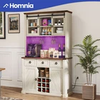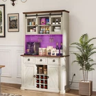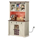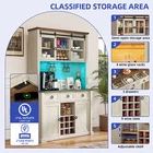 Kitchen Hutch 72-in Tall Freestanding Farmhouse Home Bar Cabinet with Wine Bottles Rack & Glasses Holder Large Sideboard 3 Drawers and Sliding Barn Door, B uilt-in Power Outlets & LED Strips Product Description NOTE: Professional Installation would be Highly Recommended. And also the product will be dispatched separately into 2 packages. Description: 1. Color: Off White + Walnut Grain 2. Material: P2 level Partice Board + MDF Board 3. Edge Plate, Sliding Door Plate and Handle Material: Iron 4. Number of UL Outlet : 2 5. Number of USB Ports : 2 6. Number of Drawers : 3 7. Number of Shelves : 12 4. Room Type: Kitchen, Living Room, Home Office, Dining Room Features: Stylish & Functional Home Bar Cabinet This stylish and functional bar cabinet enhances your home entertainment setup, ideal for storing spirits, glasses, and barware while adding sophistication to your decor. Inspired by nature and leaves, it features natural and off-white colors with wood materials, blending rustic charm with classic architecture for a nostalgically romantic feel. Versatile across various rooms, from living rooms to kitchens and home offices, this piece allows for easy coordination within any modern space. Built-in Power Outlet and LED Light Strip This bar cabinet is designed for convenience and modern functionality. It features integrated power outlets and USB ports, allowing you to charge devices and power appliances directly from the cabinet, eliminating the need for extension cords. Additionally, it includes an RGB LED light strip with seven color options and adjustable brightness, which can be controlled via remote or app, letting you set the perfect ambiance for any occasion. Premium P2 Grade PB+MDF Construction This wine cabinet is made from high-quality P2 grade particle board and medium density fiberboard, ensuring durability and a sleek appearance. It's designed for easy assembly with pre-labeled parts and includes safety features like non-tipping kits, combining robust construction with user-friendly design for long-lasting use and stability. Secure and Robust Features This storage cabinet features a tempered glass sliding barn door for clear visibility and easy access, and includes a hidden hole for tidy cable management, ideal for using kitchen appliances. It is equipped with a 9-grid wine rack and additional shelving for efficient organization of bottles, and an anti-tipping device for enhanced safety. The cabinet combines stylish design with practical functionality, providing a safe and organized way to store wine and other items. Versatile Storage Solutions This all-in-one storage solution combines a bar cart, kitchen buffet, and wine cabinet, enhancing organization and style in your home. The bar cart and kitchen buffet offer ample space for drinks, glassware, and kitchen essentials, while the wine cabinet provides stylish storage for up to nine bottles. These pieces are designed for both functionality and aesthetic appeal, keeping everything neatly stored and easily accessible. Flexible Independent Design This standalone bar cabinet can be placed anywhere in your home, such as the living room, dining area, or as a divider in an open-plan space, adding style and practicality. It is easy to move and set up, making it a perfect choice for anyone who enjoys hosting or mixing drinks. Dimensions: 1. Product Dimensions: 41.9"L x 15.7"W x 72.4"H 2. Drawer Dimensions: 12.4"L x 11.8"D x 6.5"H 3. Bottom Door Dimensions: 12.6"L x 27.7"H 4. Sliding Upper Barn Door Dimensions: 12.6"L x 16.1"H 5. Upper Open Shelves Dimensions: 12.4"L x 11.8"D x 7.7"H 6. Botoom Open Shelf Dimensions: 12.4"L x 11.8"D x 8.7"H 7. Wine Bottle Rack Dimensions : 3.5"L x 3.5"H 8. Kitchen Utensils Shelfing Height: 18.9 inch 9. LED Light Strips Length : 0.04 inch 10. Cable Length : 78.74 inch 11. Backboard Upper Cable Hole Length : 0.79 inch 12. Bottom Cable Hole Length : 1.97 inch 13. UL Outlet Capacity : 120V / 12A 14. USB Ports Capacity : 5V / 2A 15. Item Weight: 104 Pounds Package Included: 1 x Bar Cabinet 1 x Accessory Kit 1 x Instructions * Additional Notes: - This pantry is designed for indoor use only. - Avoid placing heavy objects on top of the cabinet. - Clean the cabinet with a soft, damp cloth. - Do not use harsh chemicals or abrasive cleaners. Shipping 1. Normally the item will be dipatched within 1 business day if payment is cleared before 12pm PST. 2. Please verify the correct shipping address in your PayPal account before making the payment. We only dispatch the item to the address that is sent to us at the time of checkout. 3. We don't ship to Hawaii, Alaska, Puerto Rico, APO/FPO/PO Boxes. 4. We don't provide local pick-up service. 5. Normally we will use USPS, UPS, FedEx & LTL to dispatch items. Payment 1. We accept PayPal and credit card. 2. We will ship to the confirmed Paypal shipping address that is provided with the payment only. Return 1. 30 days Money Back Guarantee. 2. Please contact our customer service to receive a RMA form first if want to return the item. 3. All returned items MUST in new condition with the original package. Contact If has any problem, please contact us by sending an ebay message. Our customer service will resolve the problem as soon as possible. On Nov 11, 2024 at 04:26:44 PST, seller added the following information:
