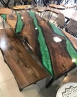 72"x30" Green Epoxy River Table Top, Epoxy Dining Table, Walnut Wood Epoxy Table
