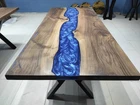 72"x36" Blue Epoxy River Table Top, Epoxy Dining Table, Walnut Wood Epoxy Table