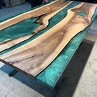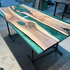 72"x36" Green Epoxy River Table Top, Epoxy Dining Table, Walnut Wood Epoxy Table