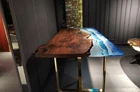 Entryway Epoxy Table Top, Live Edge Epoxy Walnut Table, Epoxy Countertop, Epoxy Resin River Table Top, Epoxy Vanity Countertop, Epoxy Balcony Table, Epoxy Living Room Table, Modern Epoxy Table Top, Epoxy Dining Table for 6, Epoxy Dining Table for 8. This will be a very unique and attractive table top for your home. For sure, be eye catching and attract everyone visiting your home. You will definitely going to receive a round of applause for bringing this beautiful table top to your home. Very different from simple looking wooden slab. Pricewise, we offer our epoxy table top at very reasonable price. We can also negotiate. Please write to us with your query. We can customize epoxy table top as per your requirements. We can customize it as per size, design, wood placement, epoxy resin colour. We can make any size 2 ft X 4 ft (24 inch X 48 inch) 5 ft X 2.5 ft (60 inch X 30 inch) 5 ft X 3 ft (60 inch X 36 inch) 6 ft X 3 ft (72 inch X 36 inch) 7 ft X 4 ft (84 inch X 48 inch) We can also make long countertop upto 20 ft. Table Thickness : 30 mm, Height : 30 inches We provide designer iron legs complimentary with epoxy table top. You can select any of the design and message us. All our legs are unique. Our epoxy table top are unique and durable as we use only seasoned and treated wood for long durability. Also, we use only quality epoxy resin for best finish. How we process the order ? Once you place the order, we provide you wood work for your confirmation. If there is any customization you need, we do it as per your requirement. Once wood work is approved, we cast epoxy resin and finish it. Before dispatch, we will share the pics and videos for your confirmation. Once approved, we do export packing and dispatch it via DHL for fast and safe shipping. Our processing time is 3-4 weeks and shipping will take 7-10 days to reach your door. Please note that wood is natural. So every epoxy table will be slightly different in terms of shape, colour and texture. We cannot provide exactly the same as demonstrated in the photo. All our shipments are insured. If you receive the goods in damaged condition, we will either provide full refund or replacement as per your decision. If there is any custom duty or local taxes at destination, same will be borne by the buyer. If you want to know anything, please write to us. We will be very happy to answer your questions.
