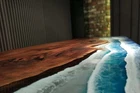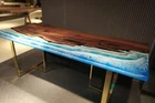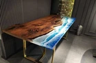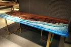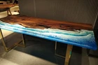 72"x36" Ocean Blue Epoxy Table Top, Epoxy Dining Table, Walnut Wood Epoxy Table