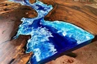 72"x36" River Waves Epoxy Table Top, Epoxy Dining Table, Walnut Wood Epoxy Table