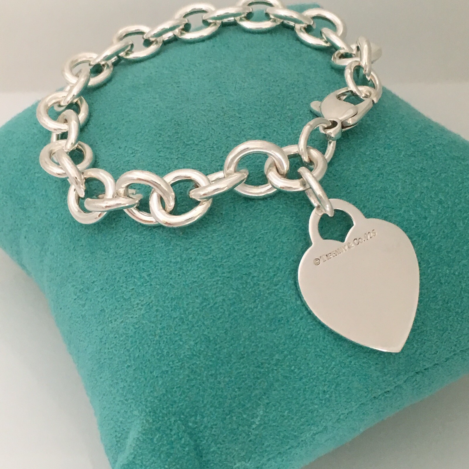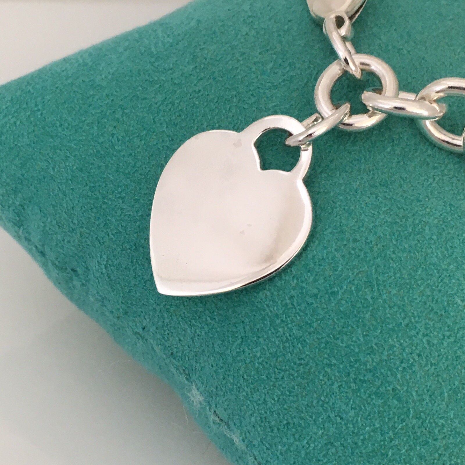 100% Authentic Tiffany & Co Heart Tag Sterling Bracelet. Measures 7.5" From clasp to clasp, w ill fit a wrist up to 6.5" around. Heart measures 1" x .82". 33 grams. Beautiful piece to start or add to a Tiffany collection! Box not included but Tiffany packaging may be available(see below). - We have a huge stock of Tiffany jewelry in our eBay store here ➡ http://stores.ebay.com/thesilvertrove - Where do we get all our Tiffany & Co Pieces? We scour antique shops, estate sales, online & local auction houses, online listings, garage sales and any other avenue we can find Tiffany items. Because we only deal with Tiffany, we have become very good at spotting fakes & sub-par repairs. - Do we include Tiffany boxes & pouches in all our listings? Unfortunately we don't have enough to do that. The items description will let you know what is included, but we typically do have boxes & pouches available for purchase if you visit our eBay store. If you would like a free box or pouch and don't mind it being in noticeably used condition, send us a message in the "Message to Seller" box at check-out and ask us for a used box or pouch. If we have some available, we are happy to send along. - Why are almost all of our Tiffany items in such amazing shape? Before we list any piece of Tiffany we scrutinize it for authenticity and check it for damage or poorly performed repairs. Fake pieces are destroyed and any items we can't repair ourselves are sent to Tiffany. Heavily damaged items will be used for parts or to lengthen other pieces. If you're ever wondering whether we lengthened a particular piece feel free to message us. - Upgrading your shipping to 1-Day or Priority. For items going to eBay's authentication department, please note that upgrading your shipping to overnight will result in us shipping your package overnight to ebay's authentication department only. Ebay will NOT ship overnight from their authentication department to you. Additionally, if you choose to upgrade your shipping to 1-day or priority and then return the item, the extra shipping fee will not be refunded to you unless we misrepresented the item. THANKS AND WE HOPE YOU LOVE YOUR TIFFANY!!
