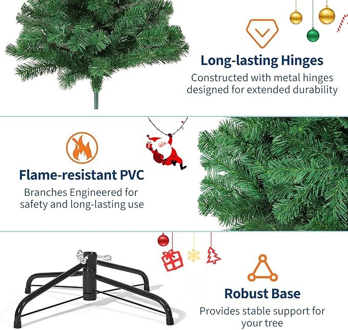 This 7.5 ft Artificial Christmas Tree is a realistic and premium spruce hinged tree perfect for the holiday season. Made of iron and PVC, this undecorated/unlighted tree is in a festive green color, adding a touch of Christmas cheer to any room. Standing at 7.5 feet tall, this artificial tree is ideal for those looking to bring the holiday spirit into their home without the need for maintenance.