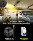 Immerse yourself in cozy comfort with Max Heat powerful 240V 7,500 watt fan-forced wall heater, perfect for heating up large spaces quickly. It can raise the temperature by 90℉ in a 750ft² room. Operating quietly at 60 dB, it ensures a peaceful environment. With 2 heat settings (Standard Power/Eco Mode), this heater guarantees optimal warmth for your space. Ideal for garages and workshop, this heater is a must-have for chilly days. Take control of your comfort with the digital thermostat feature of this garage heater. Easily adjust the temperature within the range of 40℉ to 95℉ and set a timer from 1 to 12 hours for added flexibility. With the convenient remote control, you can manage the settings from anywhere in your garage, ensuring effortless operation. The garage heater features a smart ECO mode and timer function. The ECO mode automatically adjusts the operation based on ambient temperature and can even switch off to save energy. You can set a timer for auto-shutoff to reduce energy costs. Additionally, the heater comes with a built-in thermostat for customizable power settings and includes overheat protection with automatic shut-off for safety. Providing five angle adjustments during installation, allowing you to accurately direct warmth where needed. The flexible louvers can be adjusted to ensure even heating throughout the garage, creating a comfortable environment. Designed for wall or ceiling mounting and hard-wired installation, it offers a convenient solution to maximize floor space in busy areas. Our garage heater offers wall-mounted or hanging options for space efficiency. It includes an automatic fan delay function for effective heat distribution and energy conservation. Professional installation by an electrician is necessary to ensure proper grounding and hardwiring according to safety standards, such as the National Electric Code and local regulations. This guarantees safe operation and optimum performance, freeing up valuable floor space in your garage or workspace.