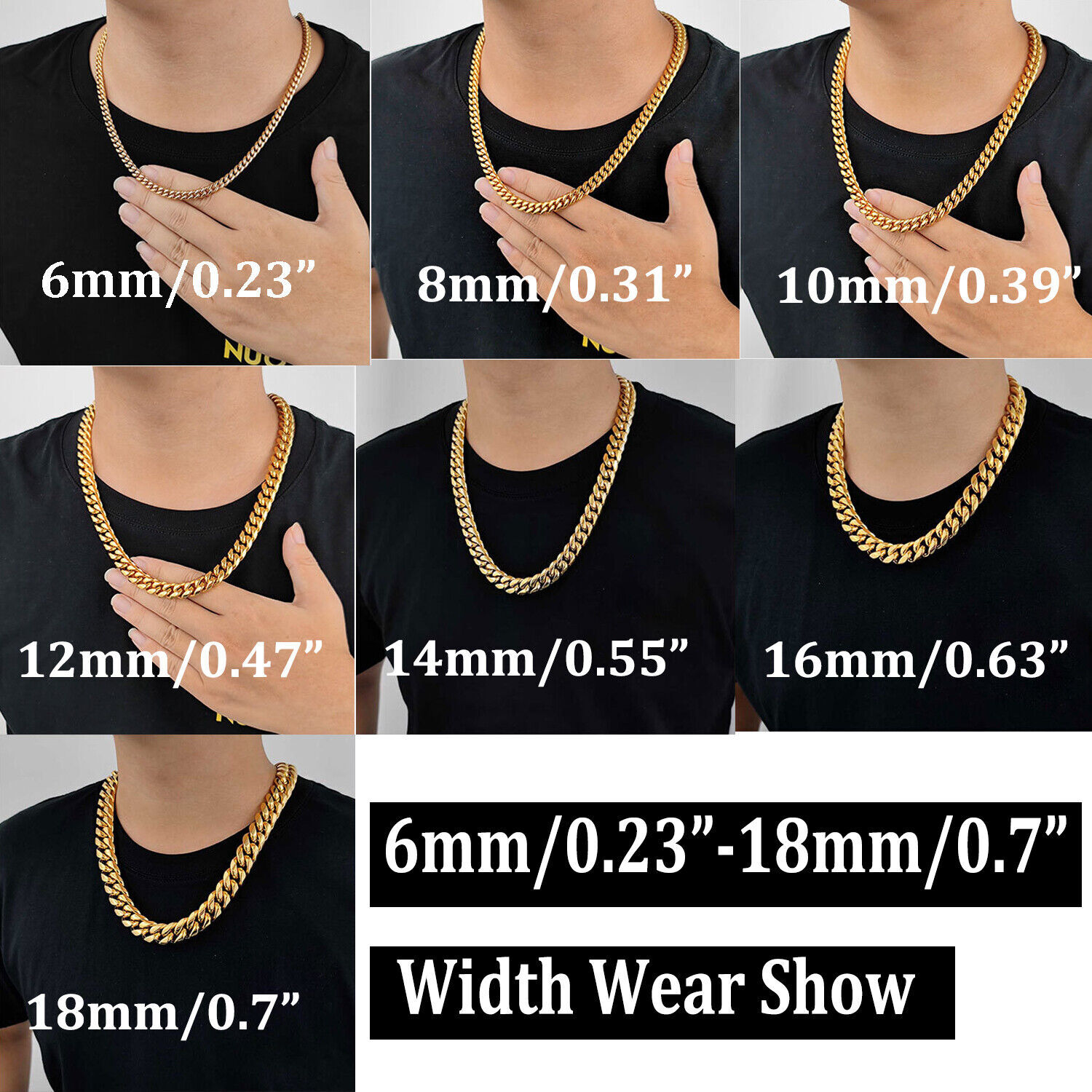 $ 7.9418K Gold Stainless Steel Cuban Link Chain for Men 7.5-30 Inch