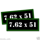 This listing is for a set of 2 adhesive vinyl labels for your ammo cans or anything else you'd like to stick these on. The come in black, with a green border, and white text. 7.62 X 51 Each label measures 3" wide by 1.15" tall. They are made of premium outdoor vinyl with UV resistant ink so you can use them indoors or outdoors. We have a huge selection of ammo can labels to choose from. See our AMMO CAN category in our store to see our entire selection! If you would like to order a large amount, please contact us to inquire about our 'bulk rate discount'. If you have a caliber that you don't see here, contact us, we can probably custom make it for you.