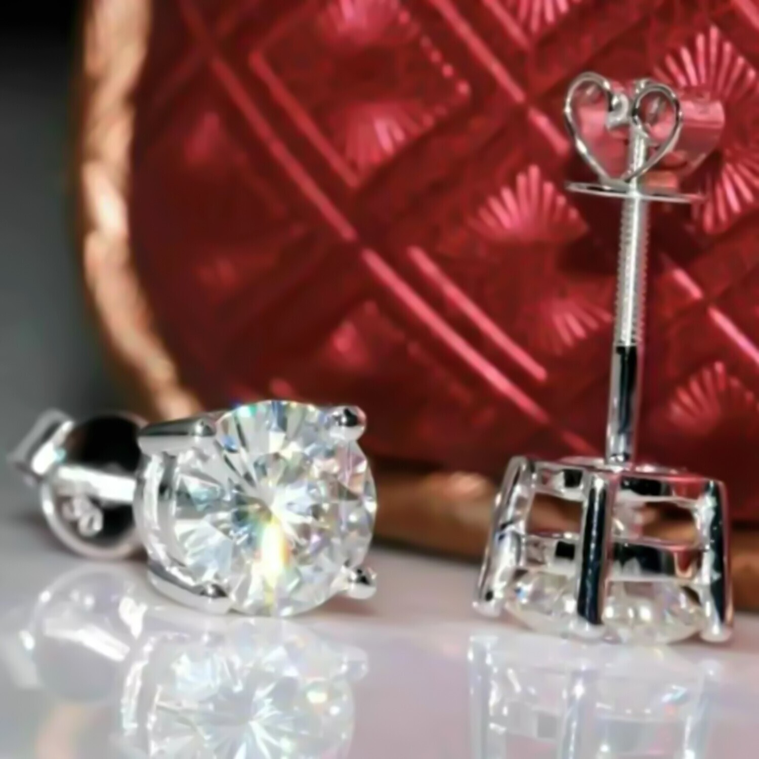2.80 Ct Treated White Diamond Stud Earrings 925 Silver, Certified Great Shine