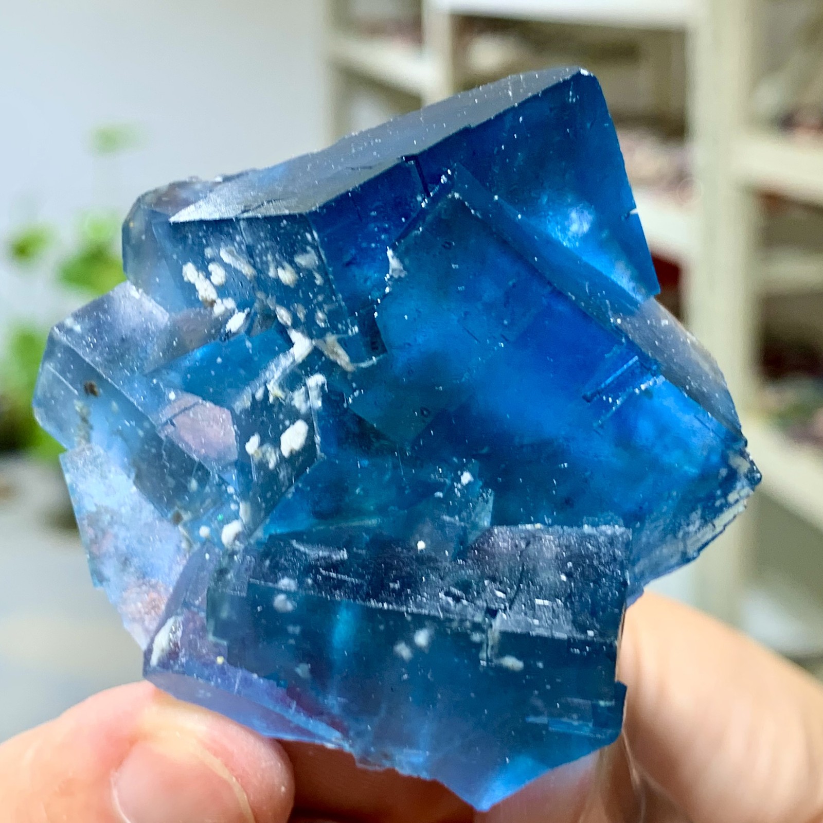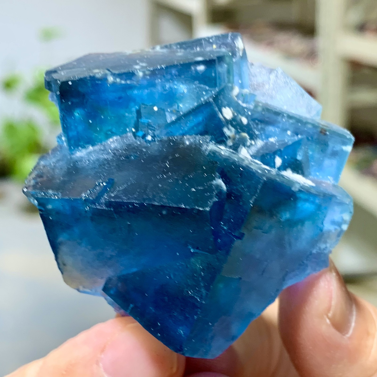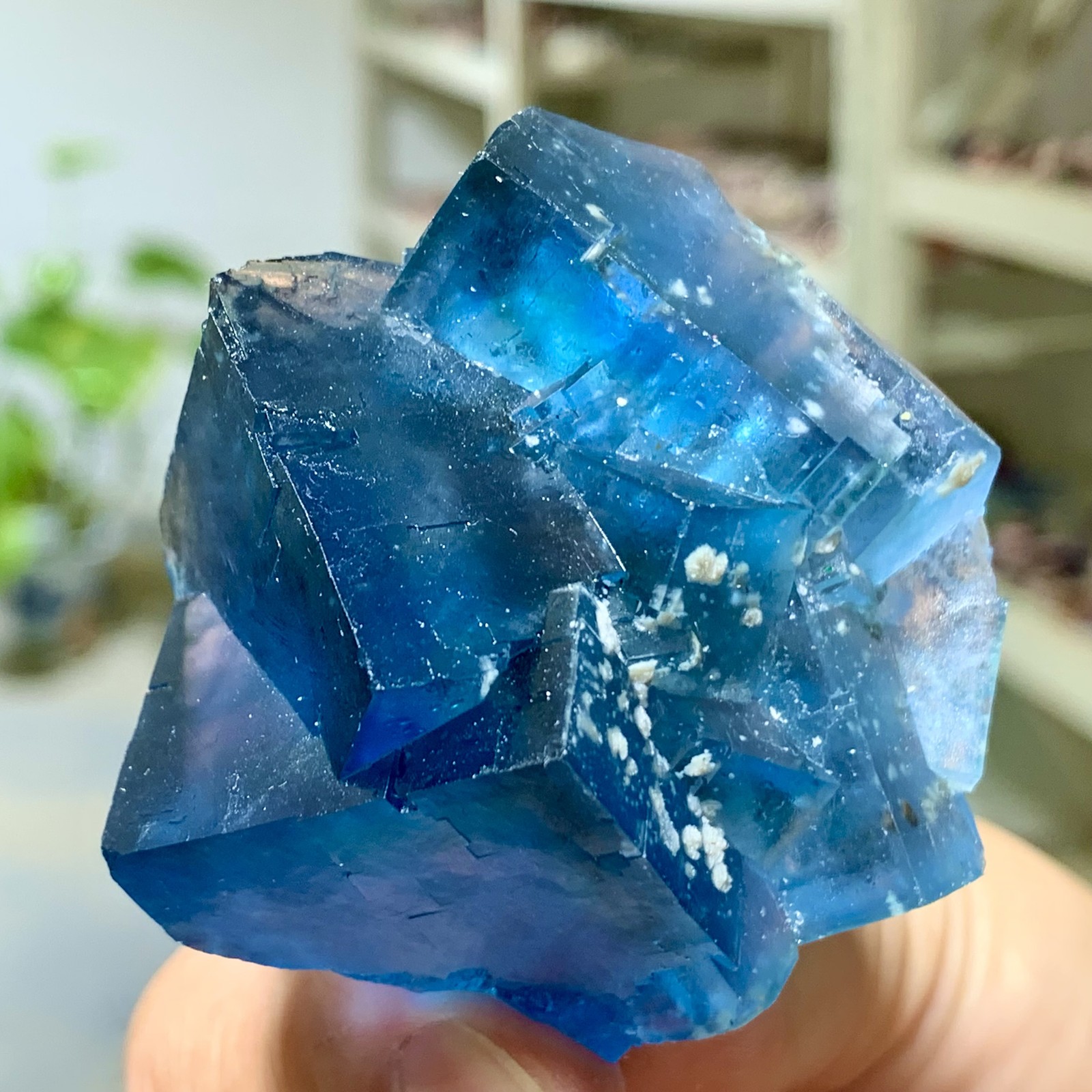 Natural Blue Cubic Fluorite with Chrysanthemum Crystal Cluster 1.46LB