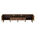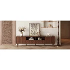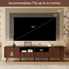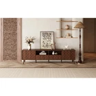 78inch Modern TV Stand - Fits TVs Up to 85 Inches, Ideal for Living Room Entertainment Center with Solid Wood Legs, Drawers & Cable Management Elevate your living room aesthetics and entertainment setup with this 78-inch modern TV stand, perfectly designed to accommodate TVs up to 85 inches—making it the ideal centerpiece for your primary living space. Blending sleek style with practical functionality, this entertainment center is crafted to complement any modern home decor while keeping your media area organized and clutter-free. Crafted with precision, this TV stand boasts an overall assembled dimension of 78.70 inches in length, 15.70 inches in width, and 20.00 inches in height, with a net weight of 83.22 pounds that ensures sturdiness without being overly cumbersome. The package comes in a compact size of 65.75 x 19.49 x 6.38 inches and weighs 90.39 pounds, ensuring safe delivery to your doorstep. Statement of Modern Craftsmanship : Redefine refined furniture design in your home with this thoughtfully crafted TV stand. Its most eye-catching feature is the elegant beveled edge, paired with a meticulously designed textured square pattern on the front—adding both visual depth and a pleasant tactile experience. Every detail is curated to go beyond mere functionality, bringing a touch of sophistication to your living space. Designed for Effortless Living : True elegance meets daily convenience with this TV stand. Integrated cable management holes discreetly tuck away messy wires, maintaining a clean and tidy appearance in your living room. Equipped with push-openers, the cabinets open easily with a simple press—eliminating the hassle of handles and streamlining your daily routine. It’s a design that adapts seamlessly to your lifestyle. Durable & Reliable Construction : Built to last, this TV stand features sturdy solid wood legs that provide exceptional stability and a timeless look. Constructed with high-quality MDF, it’s engineered to support up to 99 lbs, offering a secure base for your large-screen TV and other media accessories—ensuring it remains a reliable part of your home for years to come. Thoughtful Functional Details : Every aspect of this TV stand is designed with your comfort in mind. Each door is fitted with soft-closing hinges, ensuring quiet and gentle closure every time without the disruptive slam—protecting both the stand and your peace of mind. Perfect for Your Home Theater : With its generous dimensions, robust weight capacity, and organized storage space (including convenient drawers), this TV stand provides a complete and stylish solution for all your media needs. Keep your TV, soundbar, remote controls, and other accessories neatly displayed and stored—combining elegance and practicality effortlessly. Worry-Free Purchase Guarantee : Shop with confidence! This TV stand comes with a 1-Year Warranty, covering any manufacturing defects for a full year from purchase. Additionally, we offer a 30-Day Free Return & Exchange policy—if you’re not completely satisfied with your purchase, you can return or exchange it hassle-free within 30 days.