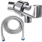 Shower arm holder with 79 inch shower hose shower head holder adjustable stainless steel shower hose head holder for wall adjustable shower head Simple to apply: With an easy installation design, you can simply screw the adjustable shower arm holder and hose onto most standard shower hose and holder within a few minutes. This humanized design really prevents much installation trouble for you. Useful tool with nice work performance: Universal connections allow our shower head holder set to easily fit most standard shower plumbing fixtures. The quality ABS and 304 stainless steel material provide it with a long lasting use for your daily smooth and satisfied shower. Specifications: Material: ABS, 304 stainless steel Color: as shown in pictures Size: Shower arm holder: 10 x 10 x 7.6 cm/ 3.94 x 3.94 x 2.99 inch Length of the shower hose: about 2 m/ 79 inch Package contents: 1 x Shower head holder 1 x Shower hose Warm notices: Since the size above is measured by hand, the size of the actual item you received could be slightly different from the size above. The colors may exist a slight difference due to different screens. Winding risk may exist, please keep away from children. Quality material: the shower head holder is made of advanced and waterproof ABS material, its appearance color well with most shower hose colors; And the shower hose is made of quality 304 stainless steel, which is durable and stable, not easy to break; The silver color of them looks nobler and more beautiful in your bathroom; Also the modern and humanized design ensures long service life and satisfying use Easy to use: our stainless steel shower hose is composed of solid brass spin inner core, very lightweight and convenient, flexible and soft, without kinking worry; The shower hose kit comes with washers, which is easy to install by hand and practical in daily use Get your flow back: you can replace the blocked hose with our shower head holder with hose kit to restore smooth water flow in the bathroom, to get a more comfortable bath shower; A comfortable and warm shower will make you relaxed and happy after a whole day of tiring work Wide application: 1/2 inch connector fits most standard shower heads, so you can apply the shower hose head with confidence, without unfit trouble; And with its universal shower arm mount connector, you can replace your broken shower head holder quickly and effortlessly Flexible and long: the hose is 79 inch long, allowing you to reach places with your hands that you just couldn't before; The shower hose head replacements have explosion-proof and encryption design, so they are very durable and stable, not easy to damage