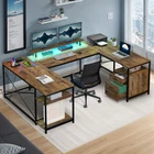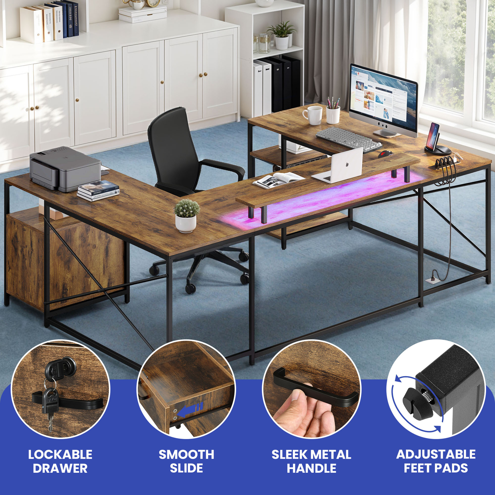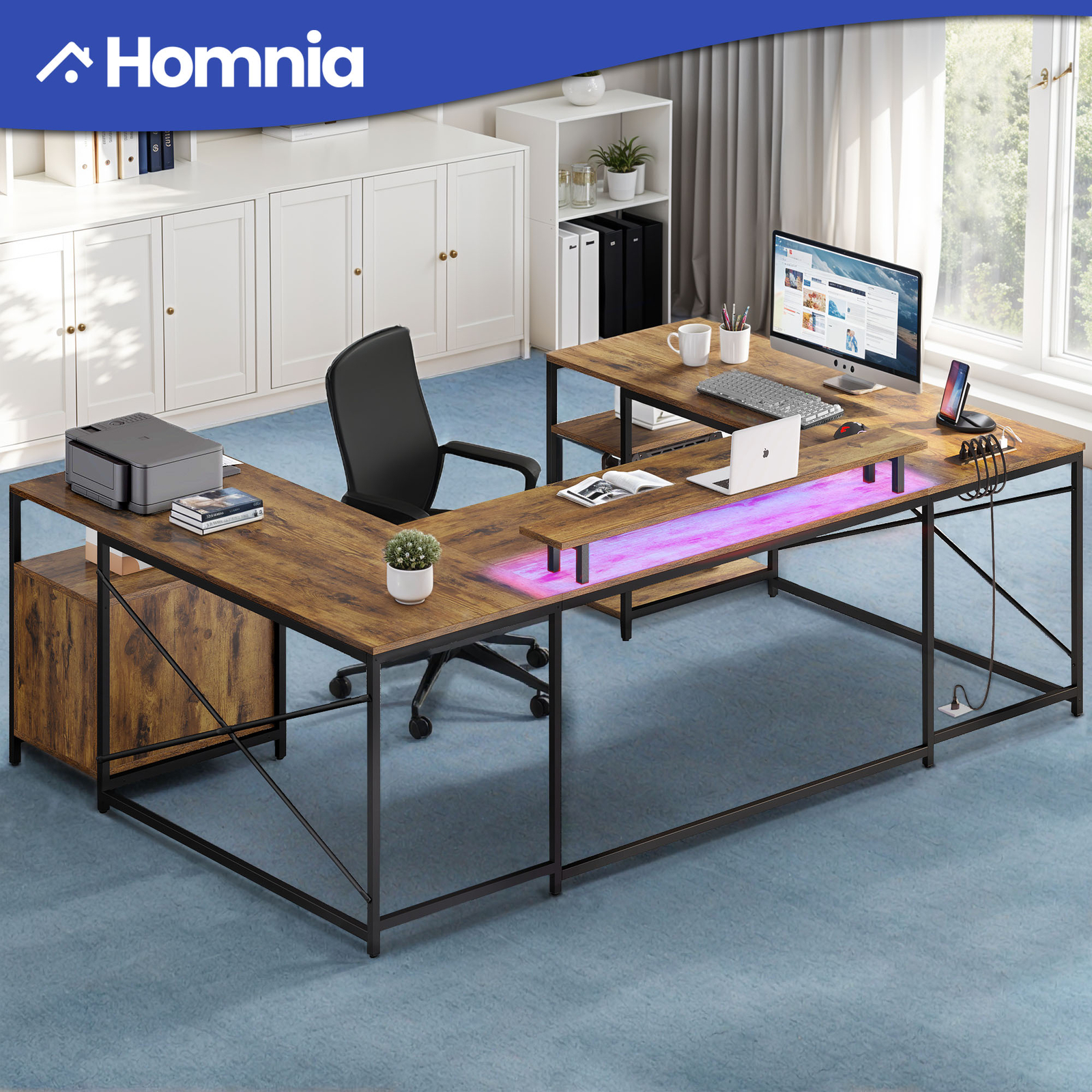 79" Reversible Office Computer Desk File Drawers Shelves LED Light with Power Hub Product Description NOTE: Professional Installation would be Highly Recommended. Description: 1. Material: MDF and Metal 2. Shape: U-Shaped / L-Shaped / Long Desk 3. Color: Brown 4. Mounting: Free-standing 5. Special Design: Reversible Design, 4 Power Outlets, 2 USB Ports, Customizable LED lights, Monitor Stand, 1 Lockable Drawers, 3 Open Shelves, 1 File Drawers, Adjustable Feet Pads 6. Room Category: Office, Study Room, Libraries, Gaming Rooms, and Living Spaces. Features: 1. Reversible Design: This U-shaped office desk offers versatile functionality with three spacious surfaces, ideal for work, gaming, and writing. Its reversible design allows you to configure it as a 106-inch left or right L-shaped desk, a 134-inch long desk, or a 79-inch U-shaped desk, ensuring it can adapt to your needs and space. Enjoy the flexibility to customize your setup to fit your requirements. 2. Integrated Charging Hub: This desk is equipped with a built-in charging station that includes 4 power outlets, 2 USB ports, and a 6.56-foot power cord. It offers easy access to charge phones, laptops, printers, gaming equipment, and other electronics. With everything at your fingertips, charging becomes more convenient than ever. Enjoy a more organized and efficient workspace with this practical feature. 3. Customizable RGB LED Lighting: The desk is equipped with a customizable RGB LED light strip that can be managed through a phone app or remote. You can select from various colors and modes, such as music synchronization, a built-in microphone, and timer options, to set the ideal atmosphere. Enjoy the flexibility to enhance your space with personalized lighting. 4. Durable and Ample Storage: This desk provides ample workspace with three spacious desktops and a monitor stand designed to promote ergonomic posture. It features a file drawer, an extra drawer, and three open shelves for organizing office essentials. Constructed with a robust steel frame and scratch-resistant P2 MDF boards, it guarantees durability, while 12 adjustable foot pads ensure stability on any surface. Dimensions: 1. Desk Dimensions (U-Shaped) : 78.7"L x 47.2"W x 29.7"H 2. L-Shaped Length: 106.3"L 3. Long Shaped Length: 133.9"L 4. Item Weight : 104.72 lb 5. Lockable Drawer: 13.6"L X 14.4"W X 3.9"H 6. File Drawer: 13.6"L X 14.4"W X 10.6"H Package Included: 1. 1 x L-Shaped Desk 2. 1 x Packet of Fittings 3. 1 x Instructions Manual Shipping 1. Normally the item will be dipatched within 1 business day if payment is cleared before 12pm PST. 2. Please verify the correct shipping address in your PayPal account before making the payment. We only dispatch the item to the address that is sent to us at the time of checkout. 3. We don't ship to Hawaii, Alaska, Puerto Rico, APO/FPO/PO Boxes. 4. We don't provide local pick-up service. 5. Normally we will use USPS, UPS, FedEx & LTL to dispatch items. Payment 1. We accept PayPal and credit card. 2. We will ship to the confirmed Paypal shipping address that is provided with the payment only. Return 1. 30 days Money Back Guarantee. 2. Please contact our customer service to receive a RMA form first if want to return the item. 3. All returned items MUST in new condition with the original package. Contact If has any problem, please contact us by sending an ebay message. Our customer service will resolve the problem as soon as possible. On Jun 6, 2024 at 07:28:43 PDT, seller added the following information: On Jun 18, 2024 at 14:32:49 PDT, seller added the following information: On Jul 23, 2024 at 06:02:22 PDT, seller added the following information: On Jul 26, 2024 at 03:53:43 PDT, seller added the following information: On Jul 31, 2024 at 08:36:40 PDT, seller added the following information: On Aug 13, 2024 at 19:41:17 PDT, seller added the following information: On Oct 17, 2024 at 03:19:04 PDT, seller added the following information: On Oct 28, 2024 at 01:30:34 PDT, seller added the following information: On Nov 14, 2024 at 02:27:15 PST, seller added the following information: On Feb 4, 2025 at 21:45:47 PST, seller added the following information: On Feb 24, 2025 at 18:55:08 PST, seller added the following information: