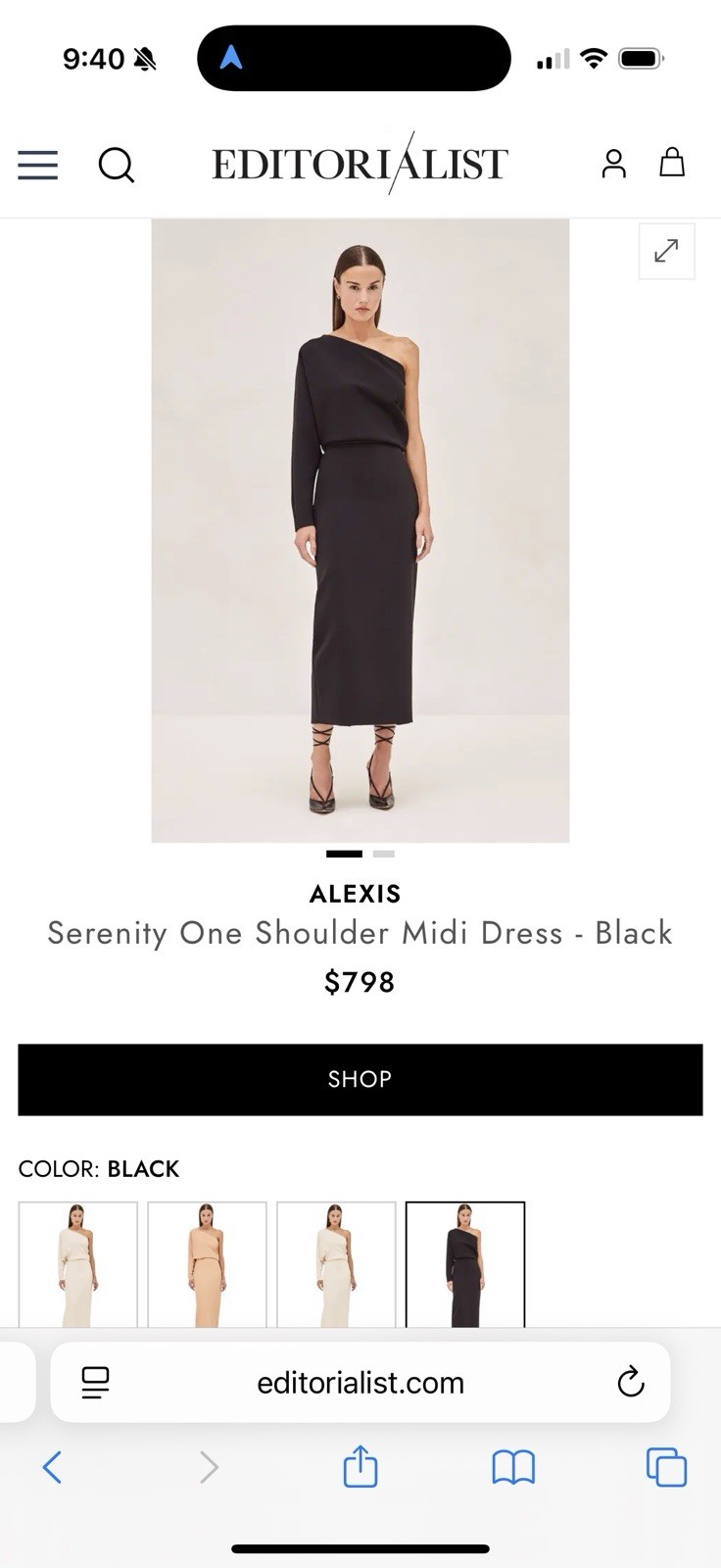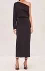 The $798 Alexis Serinity One Shoulder Midi Dress in size medium. Please note this fits more like an XS or S. Here are the measurements: Bust: 33.5 Waist: 26.75 Hip: 34 Length 48 The dress features a solid black color, one shoulder neckline, and a zip closure. With a midi dress length and a flattering fit, this dress is perfect for the summer, fall, and spring seasons. The dress is from the ALEXIS brand and is designed for regular wear, with garment care instructions suggesting dry cleaning only. This dress is a sophisticated addition to any woman's wardrobe. Beautiful dress, but does not fit so that is why I am selling.