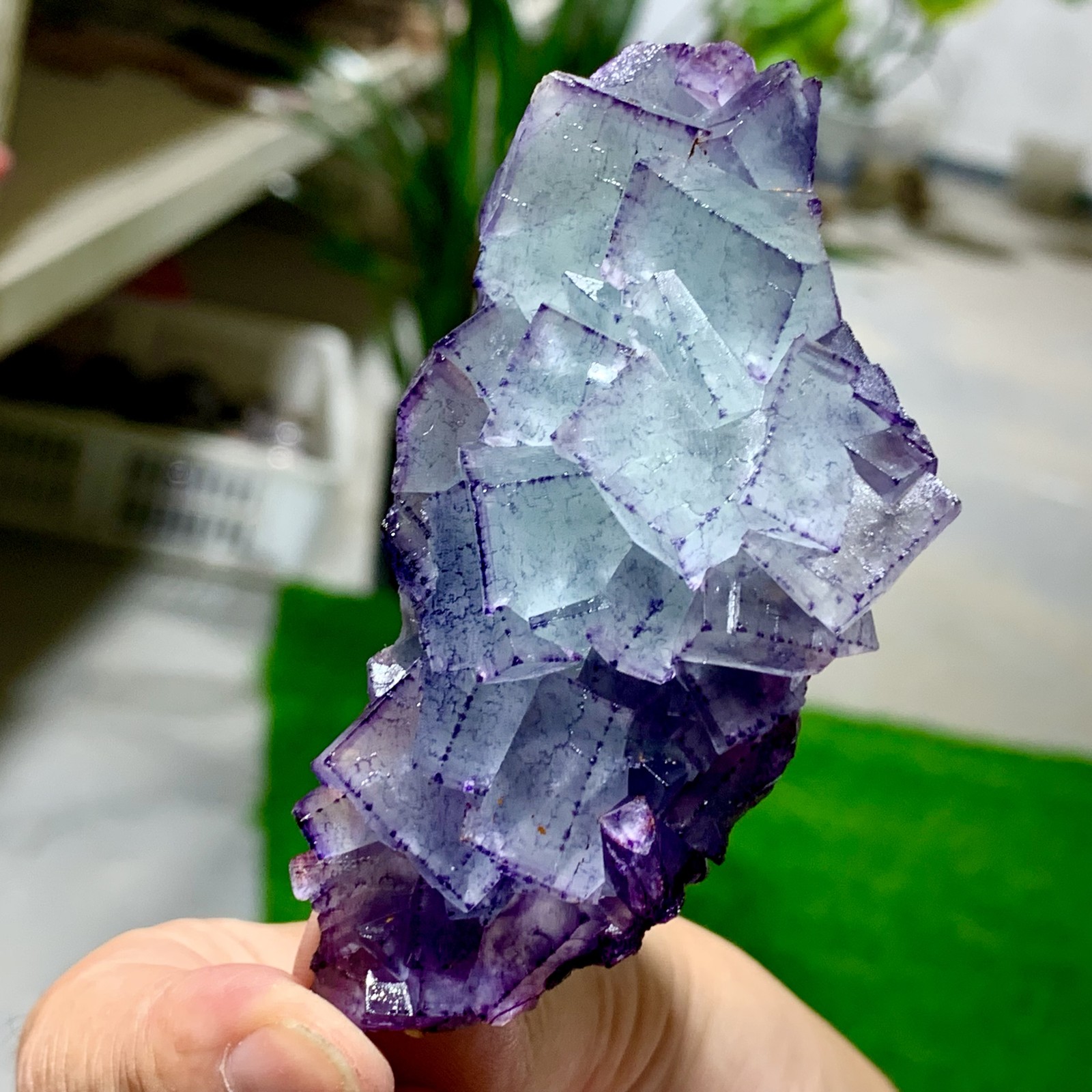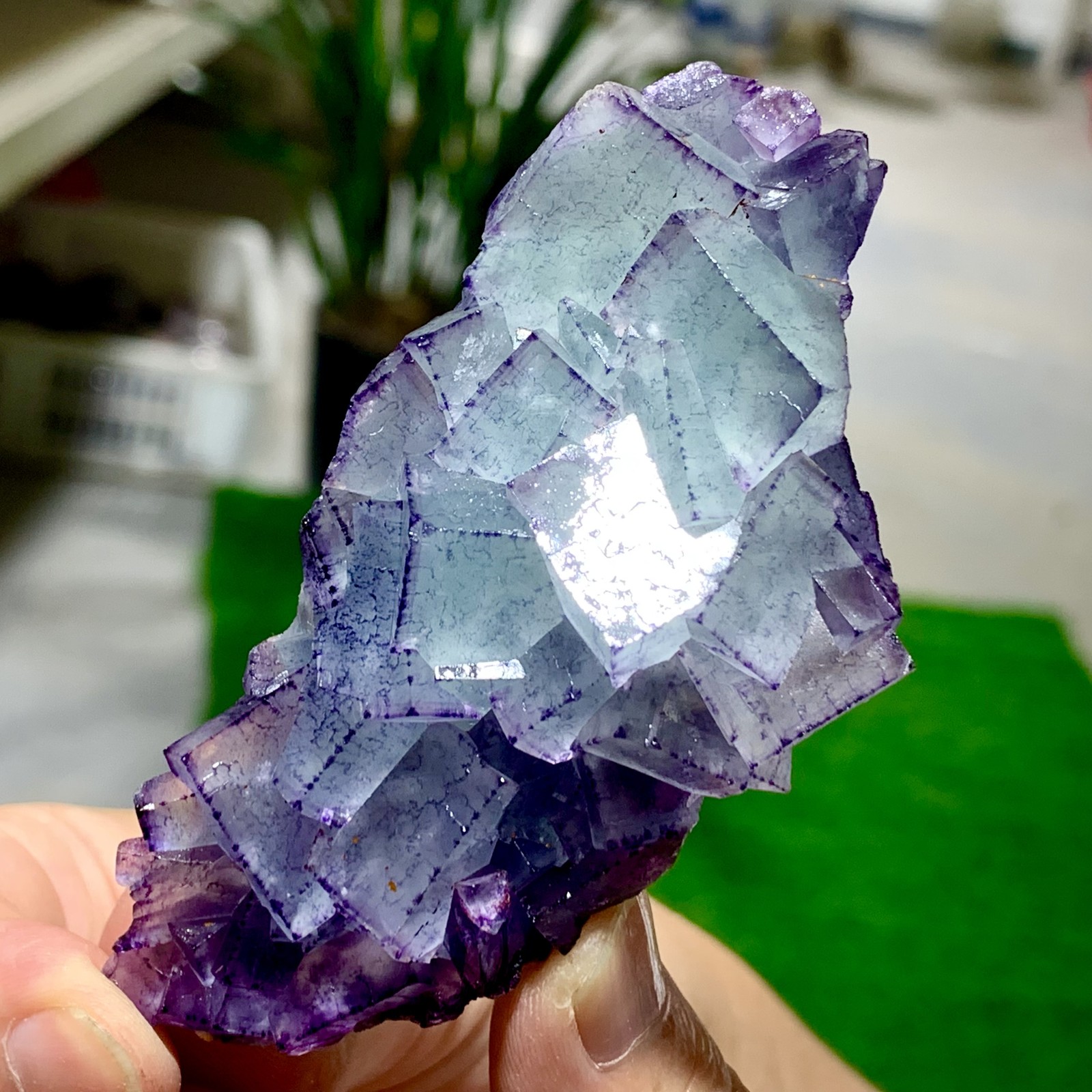 293G Rare transparent blue green cubic fluorite mineral crystal sample/China