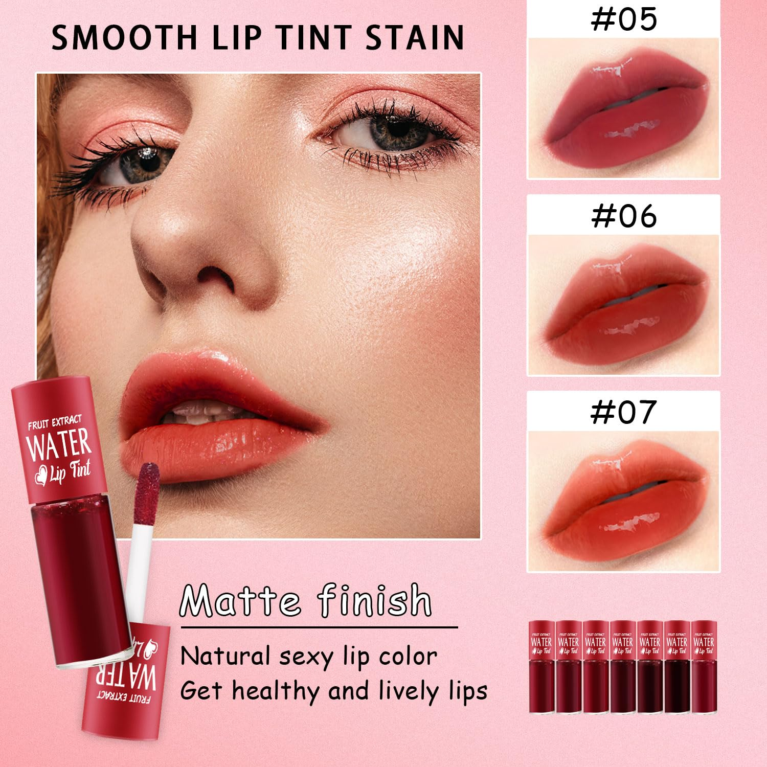 7 Colors Lip Tint Stain Set, Plumping Mini Liquid Lipstick, Korean Lip Gloss Moisturizing Natural, Multi-Use Lip and Cheek Tint, Long Lasting Non-Stick Cup Waterproof,High Pigment, Vivid Color (SET A) 【Lip Stain Set】The water lip tint contain 7 sweet colors, instantly make your lips look more health and lively, enhance your overall appearance with vivid sexy tones. 【Multi-use lip tint】The lip tint stain can be as lip tint, as well as blush or eyeshadow for a same color atmosphere, natural matte and velvet mist makeup effect that lasts for hours. 【Moisturizing Effect】The mini lipstick rich in fruit extracts with hydrating and moisturizing effects, after color, nourish & comfort lips without heavy, sticky or dry feeling. 【Easy To Use】This lip and cheek tint is easy to smear and absorbed quickly, help plump and brighten lips color, highlight the natural beauty, the safe formula also suits for sensitive skin. 【Usages】1. Smear the lip stain onto center of lip and gradate outwards for lips gradation features. 2. Evenly apply on lips for full cover features. For a deeper intensity of color, repeat applies. 3. Layer lip gloss or lipstick on top for extra watery plump lips. Product Description Product Features: This lip gloss can be used for many purposes. It can not only be used as lipstick, but also as blush to balance makeup. Lip tint adopts non stick formula, which is light, smooth and easy to apply. Liquid application is not thick, creating light and transparent lip makeup. Waterproof and sweatproof, long lasting makeup all day. Lip tint stain has high color saturation and color rendering. The 7 bright and bright colors can be used alone or overlapped to create makeup with different atmosphere effects. Watery lip tint, rich in moisturizing ingredients, lasting nourishment, not easy to fade. NAME: ROUGE WATER LIP STAIN NET WEIGHT: 3.5g*7 WEIGHT:13.2g SHELF LIFE: 3 YEARS Small and lightweight, easy to carry Moisturizing, Plump and Vivid Lip Makeup Long Lasting Waterproof Lip Tint Lightweight Non-Sticky Matte Lipstick Dimensions 2.13 inches x 4.29 inches x 0.55 inches. Weight: 1.23 oz Specifications Color SET A Finish Type Vivid Skin Type All Item Form Liquid Package Dimensions 4.29 x 2.13 x 0.55 inches; 1.23 ounces Shipping: Shipped from the USA. Fast delivery within 2–3 days. Payment: PayPal, credit card, bank transfer. Returns: 30-day free return – we cover the shipping cost. Quality: Made in Europe/USA/China. No customs fees. VAT invoice on request. Feedback: You’ll automatically receive positive feedback after payment.