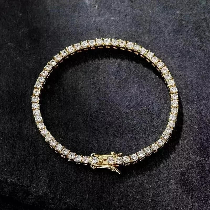 $ 264.0Lab Created Diamond 14k Gold Plated Hip Hop Tennis Bracelet with Cluster Design