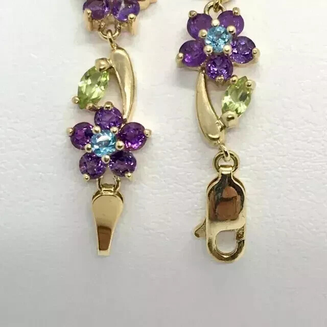 7Ct Round Lab-Created Amethyst Flower Tennis Bracelet 14K Yellow Gold Plated 7"