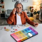 Weekly Pill Organizer(Twice a day) Big size multifunctional medicine holder Meet your all needs ∗ Rainbow color compartment ∗ Easy to open ∗ Meet the needs of one week ∗ Sealed and Moisture-proof ∗ High Capacity ∗ Snap-in Design Food-Grade PP Materials It is plastic that can be directly contacted with food. It has been certified by SGS and can be used safely. UV Printing increase product brightness and not easy to scratch. Product weight: 176 Grams Product Size: 9.49*4.69*1.1 inches One compartment size: 2.13*1.26*0.98 inches One compartment can be contained: 30 pills or 10 fish oills or 20 capsules Questions? How to use the pill organizer? The Weekly Pill Organizer is convenient for your medicine storage.You can store and take your pills or vitamins in the compartment daily. Where is the item from? How long can I get the parcel? All items are shipped from CA and most of the parcel will be shipped via USPS. It will take 2-6 business days for delivery ordinarily after payment. Have a problem with your order and item? Please go to order details and find “ Contact seller ”. You can send us a message and ask. Please don’t open return or refund request. All issues will be solved in 24 hours from Monday to Friday. We maintain high standards of satisfaction and will work with you. Your positive Feedback is very important for us. Please don’t hesitate to contact us if you have any problem.