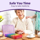 Weekly Pill Organizer 4 Times a Day, Large 7 Day Pill Box Portable for Travel, Medicine Organizer Box with Removable Individual Pill Containers to Hold Vitamins, Supplements and Medication Carry More but Portable - Overall 8''x 5''x 1.4'' and 4.8" x 1.2" x 1'' for each compartment, weekly pill organizer 4 times a day is with enough storage for your medicine and very portable while traveling. You can also take each day separate pill case out instead of the whole pill box 7 day for your daily life Pill Box 4 Times a Day - Including 3 times a day plus one backup pill box, considering any moment you take medicine. 7 day pill organizer makes organizing your one week pills a breeze Excellent Printing - Bold letter marks on the daily pill box organizer will remind you what to take by the day. The printing of the medicine box have passed the critical 3M adhesives & tapes test, won't rub off for over 5000 times of use. Double Protection Design - Premium solid ABS outer container and high-quality large weekly pill organizer provide double protection for your pills. Don't need to worry about pills spilling in your bag or suicase any more, pill dispenser closes tightly all the time. BPA- Free Material - Our large pill organizer is constructed of food-grade pp material, pill boxes will not cause any harm to human body and won't contaminate your daily medicine. Shipping We ship within Three business days of payment, usually sooner. We use a selection of shipping services such as UPS, FedEx, USPS etc. We only ship to the lower 48 states, no APO/FPO addresses or PO Boxes allowed. Local pickups and combined shipping options are not provided at this time. Return You can return a product for up to 30 days from the date you purchased it. Any product you return must be in the same condition you received it and in the original packaging. Please keep the receipt. Payment We accept payment by any of the following methods: PayPal Please pay as soon as possible after winning an auction, as that will allow us to post your item to you sooner! Feedback Customer satisfaction is very important to us. If you have any problem with your order, please contact us and we will do our best to make you satisfied. Contact Us If you have any queries, please contact us via ebay. We usually respond within 24 hours on weekdays. Please visit our eBay store to check out other items for sale! Thank you for shopping at our store.