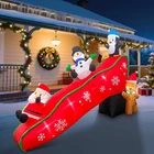 【🎄 Light Up the Christmas Holiday Joy: 7FT Giant Inflatable Christmas Wonderland is Here! 🎅】 ✨ 【Product Highlights】 ✨ ✅ Eye-Catching Giant Design: With a stunning 7FT height, it shines even brighter at night! Whether day or night, it becomes the most dazzling holiday focal point in the neighborhood. ✅ Dynamic Scene Storytelling: Santa Claus sets aside his gift bag, the snowman tosses snowflakes, the penguin flaps its wings, and the gingerbread man smiles brightly—the dynamic sliding scene breaks the static monotony of traditional decorations, telling a Christmas story full of childlike fun. ✅ Easy Inflation + Weather-Resistant Durability: Made of high-strength eco-friendly polyester material, it inflates quickly to reveal its shape. Equipped with built-in sandbags, windproof ropes, and ground stakes, it stands strong against wind and snow, delighting all season long! ✅ Energy-Efficient LED Lighting: Built-in soft warm white lights, low energy consumption yet high brightness. Lighting it up every night becomes the warmest winter scenery. 🎁 【Perfect For】 🎁 🎄Home yards, mall entrances, park displays, corporate celebrations… anywhere that needs Christmas spirit is its stage to shine! 🎄This winter, join the slide party with the Christmas all-star team! Let laughter and joy bloom with the lights, creating dreamy Christmas memories that are uniquely yours. Specifications Material: polyester Inflating Length: approx. 7 FT(There might be size errors because of manual measurement) LED Light: 8 Pieces Package Information: 1 x Christmas inflatables 8 x Ground nail 4 x 2m Rope Several Sandbags Adapter Fan User manual Christmas Fun Slide Party: Adorable Santa Claus, cute snowman, playful penguin, and sweet gingerbread man gather together, sliding down joyfully from the slide, instantly transforming your yard into a magical Christmas paradise straight out of a fairy tale, bringing to life a Christmas story full of childlike fun Affordable & Reusable: Made of premium waterproof polyester fabric with upgraded and excellent sewing craftsmanship, this Christmas funny slide party features long-lasting, fade resistant, weather resistant and air leakage, available for reuse to decorate Christmas in next year More Sturdy from Wind: To improve the stability of the Christmas inflatables when working outdoors, there are several sandbags for filling with sands to increase its bottom weight. Combined with belt loops, rope, and ground nails, the overall design of the inflatable Santa Claus makes it more sturdy, ensuring normal use, even in windy,snowy, and rainy weather Easy Setup & Fast Inflation: Christmas inflatables is equipped with a strong blower, easy to operate. Unfold and zip up the Santa inflatable in an open area, plug in the adapter, you will got a unique and attractive Christmas decoration in a few minutes Built-in LED Light: To enhancing the viewing experience and decorative effect, the Christmas blow ups is designed with 6pcs LED lights inside to light up its body, making it better viewing at night and creating strong festival atmosphere for Christmas. It's a great Xmas ornament for both indoor and outdoor party decorations in this New Year Worry-Free Warranty: We stand behind our products. Enjoy 24/7 customer support and a straightforward 30-day return policy. If you have any questions, our team is here to help ensure a smooth and satisfying experience