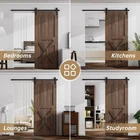 [GOOD MATERIA & PRACTICALITY]The sliding closet door hardware made of high quality heavy carbon steel, the maximum load can be up to 330lbs, with a black color appearance throughout for a more atmospheric look. Suitable for bedrooms, kitchens, lounges, clubhouses and other places, it is suitable for both vintage and modern styles, adding a bit of sophistication to your home. [SMOOTHLY & QUIETLY]The barn door track is designed with premium pulleys for silky smooth and quiet use. With spring damped door stopper reduces the impact on the track and slows down the life of the door.Fits doors with a wide range of door thicknesses from 1.18" to 1.96", with approximately 5.9" of clearance between the door panel and the ceiling . [EASY INSTALLATION]The sliding barn door with hardware kit is complete and will need to be installed by you after arrival. Please rest assured that we have detailed instruction tutorials, in addition to the product installation video and installation step-by-step pictures uploaded on the page so that you can install it quickly and with less effort. [PACKING LIST]The barn door hardware kit include: spliced rails, rail spacers, 2x rollers, 2x door Stops, 2x anti-jump disks, 1x floor guide. We have also uploaded pictures of the product hardware for easy comparison.(Hardware kit only, barn door not included) [ATTENTIVE SERVICE]We have good presale and aftersale service, you can contact me if you have any questions during the purchase process. The most important thing is that if the door hardware parts appear to be lost in transportation, please contact me in time, I will replace them for you, and I also hope you can understand!