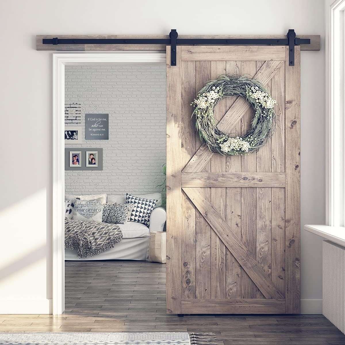 $ 77.256.6FT Heavy-Duty Barn Door Kit with Smooth Nylon Rollers for Superior Durability