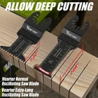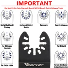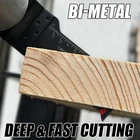 7Pack Vearter Extra Long Curved Edge Bi-Metal Oscillating Saw Blade Brand: Vearter Material: Bi-Metal Length: 120mm (4-3/4'') Working Depth:70mm (2-3/4'') Blade Width: 31mm(1-1/4") 【Curved Edge Design】 This oscillating saw blade’s innovative arc edge design delivers optimal cutting angles, greater efficiency, and accuracy. It also reduces vibration and enhances stability during use. 【Long Reach Plunge Cut】 This wood and metal multi-tool blade kit provides 2-3/4’'(70mm) of extra reach, making cuts more effective and consistent. 【High Efficiency】 2-3/4''(70mm) extra long oscillating multitool blades are designed for deep, powerful cuts. They also feature a wavy tooth design that offers faster and cleaner cuts with reduced pressure on individual teeth, resulting in excellent cutting performance. 【Meet Your Demand】 This oscillating blade is ideal for fast, deep cuts in wood with nails, metal, plasterboard, and plastic, commonly used for projects such as cutting under the kick plate during kitchen floor installations, undercutting door jambs, and flush cutting tongue-and-groove. 【Universal Compatibility】 Our quick-release oscillating saw blades have a universal interface system that works with most oscillating tools on the market, including Dewalt, Diablo, Milwaukee, Rockwell, Craftsman, and others (excluding the starlock interface system).