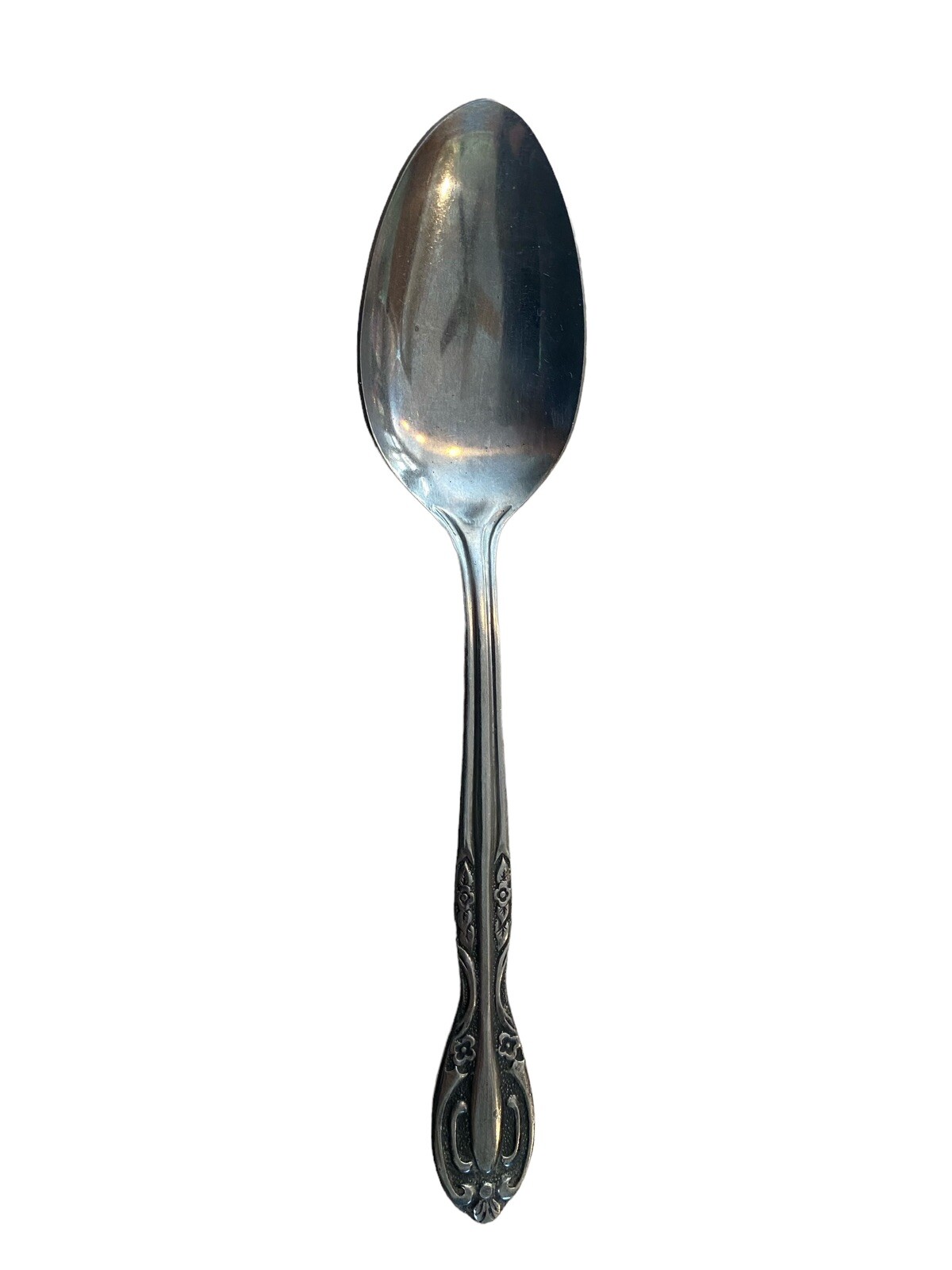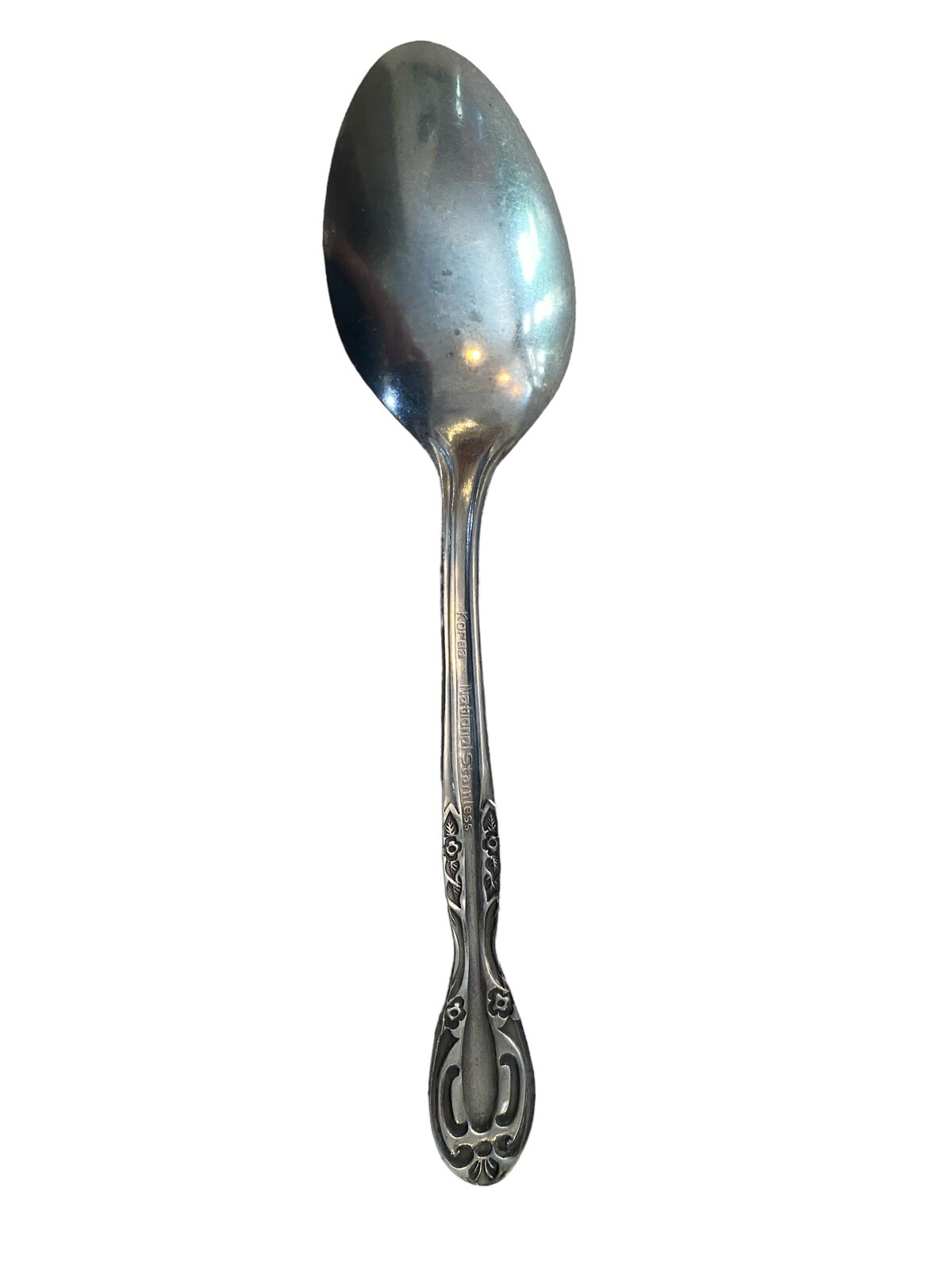 Add a touch of vintage elegance to your table setting with this set of 7 National Stainless Caress spoons. With a sleek silver design and stainless steel handle, these serving and iced tea spoons are perfect for any occasion. The set includes a total of 7 spoons, each measuring 7 1/2 inches in length. Crafted in Korea, these spoons feature a unique caress pattern that adds a touch of sophistication to any table setting. The National Stainless brand is known for its high-quality stainless steel products, making these spoons a durable and stylish addition to your collection. Whether you're hosting a formal dinner party or a casual family gathering, these spoons are sure to impress.