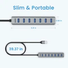 USB 3.0 Multiport Expansion: Instantly add 7 USB 3.0 ports to your laptop or desktop PC, suitable for USB flash drive, keyboard&mouse, printer, and other USB peripherals. SuperSpeed Transfer: USB 3.0 ports support blazing transfer speed up to 5Gbps,10x faster than USB 2.0, fast enough to download HD movie or large files within seconds. Compact and Durable: Made of premium aluminum alloy case with milled craft, making this hub better heat-dissipation and durable for a longer life span; ultra-slim and lightweight design can be tucked into your bag easily. Wide Compatibility: Compatible with most operating systems, Windows, Mac OS, Linux 2.1.6 and above; high-speed USB hub for Macbook Pro/Air, Surface Book, Lenovo Yoga, ThinkPad, Chromebook, and other computers. Stable Connection: Comes with a 5V/3A USB-C port to connect a power adapter and ensure steady transmission when using power-hungry devices. The built-in smart chip will avoid damage from over-voltage and over-current.