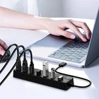 Features: Elevates your connection with 7 Port USB3.0 adapter,to expand devices USB capabilities and enhances your workflow efficiency with ease. This USB splitter features individual switches and LED indicators for each port, allowing you to manage power distribution and device connections accuracy. 7 independent buttons, can control multiple devices at the same time, convenient and quick. USB3.0 fast speed transmission, support data and charging function. For computer users who need to connect multiple USB devices, such as office workers, students, game enthusiasts and so on. Specifications: Size:about 171x46x2mm/6.73x1.8x0.82in Component:ABS Port: 7xUSB3.0 Cable length:about 30cm/11.8in Package Includes: 1PC USB3.0 Adapter note: Due to problem of light effects,there might be tolerances in product, please understand. Please allow 0-1cm error due to the measurements