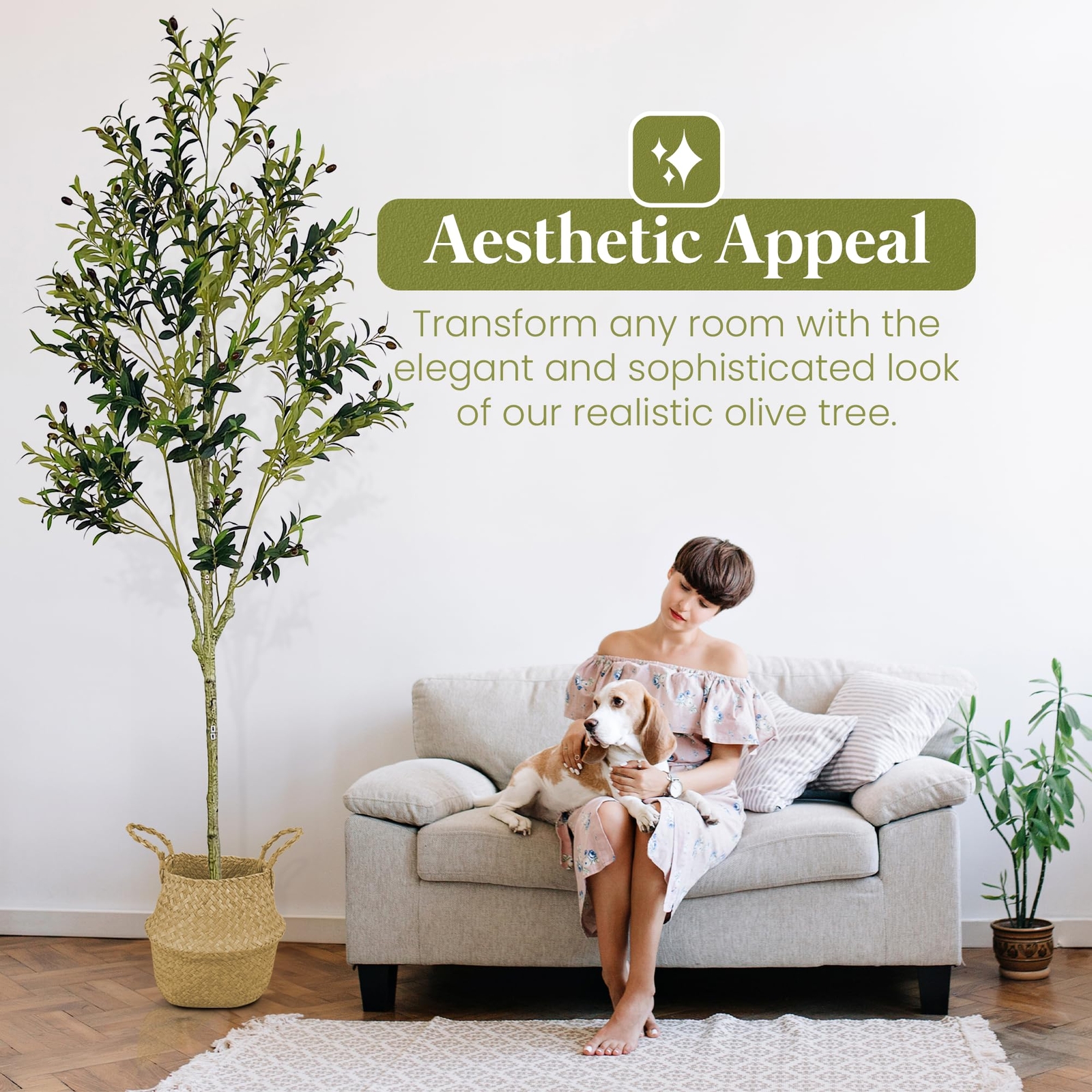 Enhaced Indoor Oasis - Elevate your home decor with our 7 Feet Tall Plant, blending seamlessly into any interior with its lifelike appearance and natural color, perfect for living room or office spaces. Transform any corner into a vibrant indoor plant haven effortlessly. Seamless Integration - Ideal as a sophisticated focal point, this Fake Olive Tree harmonizes with any home indoor garden, delivering a touch of elegance and tranquility to your personal or professional environment. Its stature makes it an ideal floor plant, enhancing the ambiance with its natural beauty. Exclusive Bonus - Receive a complimentary high-quality wicker olive tree pot with each purchase, valued at $15 plus. Perfect as a pot for olive tree indoor, enhancing your setup with a stylish, rustic touch that complements any decor. Effortless Elegance - Our artificial trees for home decor indoor requires no maintenance, freeing you from watering and sun exposure worries, while providing a refreshing, lifelike addition to your decor collection. Enjoy the timeless beauty of an artificial tree without any upkeep. Eco-Conscious Decor - Crafted with environmental friendliness in mind, our tall fake plant offers high simulation leaves and a safe, non-toxic design, ensuring a sustainable and safe enhancement to your indoor sanctuary. Add a touch of green with a faux tree that’s as environmentally conscious as it is beautiful.