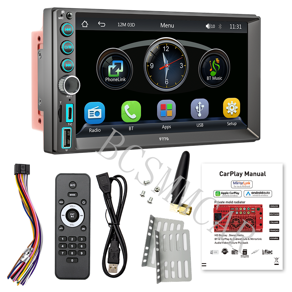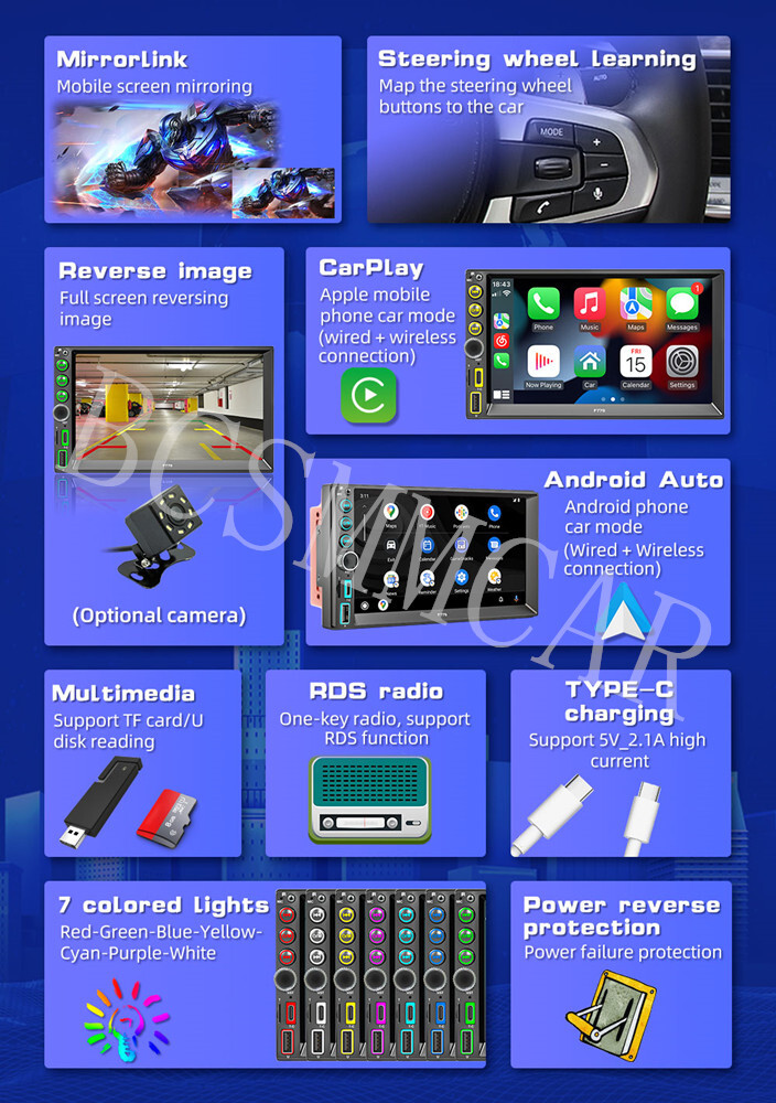 Home Payment Return Policy About us Contact us BCSMMCAR 7in Car Multimedia MP5 Player FM RDS Mirror Link For Carplay Android Auto W/SWC Product Overview Details 7" Double 2 DIN Car Stereo Radio Bluetooth Touch Screen USB Type-c FM MP5 Player Product introduction: *Screen size: 7-inch touch screen *Screen resolution: 1024 * 600 *Software solution: F133 *Radio frequency: FM 87.5-108.0MHz AM 522~1620KHz *Bluetooth version: 5.1 version *Installation size: 178x103MM *Net weight of the whole machine: 0.82KG *Playback mode: USB drive, AUX, Bluetooth, card insertion playback *Working temperature: -10~60 ℃ *Working voltage: 12-14.4V *Output power: 60Wx4 *Audio format: MP3/WMA/AAC/APE/OGG/M4A/RA/WAV *Format: H263/H264/H265/DIVX HD (720P 1080I1080P) AVI/FLV/MKV/RMVB/MPEG/MP4 /WMV9/VC/ASF/TS/QT *Language parameters: English, Chinese, Spanish, Portuguese, Russian, German, French, Polish, Türkiye, Arabic, Hebrew, Italian, Czech, Japanese *Accessories: 1. Host 2. Manual 3. Power cord 4 21 key silicone remote control 5. Installation bracket 6. Screws 7. USB extension cable 8. Pepper antenna Shipping Policy Payment Method Returns Policy Shipping Policy All items will be checked before packing. All items are new and of high quality. Item will be shipped within 1 business days upon receipt of payment, excluding weekends and public holidays. If to USA,we will ship your order by USPS or UPS,it will take about 2-6 working days to you,and you can track it on line. Payment Method We accept payment by PayPal only ! Payment should be completed within 5 days after buyer places the order,or else an unpaid case will be opened in order to cancel the transaction. If you can not pay in time, please contact us. e-check from PayPal will only be processed once the payment clears. All of the items will be shipped to buyer's EBAY address,please confirm your address on Ebay before you buy.Your order will be usually shipped out the same or next business days once the payment is made and cleared Returns Policy 30-day Warranty with Exchange for defective, malfunctioned, incorrect or parts-missing items. Please notify us and return the item with all parts and accessories packed and marked "FOR EXCHANGE" within 14 days of receipt. If defective, malfunctioned or parts-missing items are no longer available, a refund may be issued. All returning postage costs will be the responsibility of the buyers under all circumstances. Store Categories Store Categories Other Home Payment Shopping About Us Contact Us On Feb 11, 2025 at 18:07:44 PST, seller added the following information: