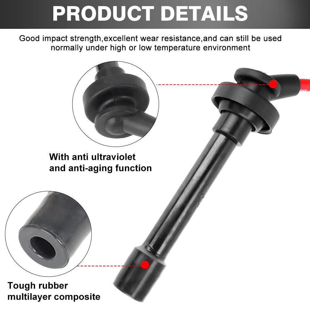 7mm Cable Spark Plug Ignition Wires For Honda Accord Civic Del Sol 92-00 2.3L 7mm Spiral Wound Spark Plug Ignition Wires Set | Fits Honda Civic 92-00 Del Sol 93-97 Accord SOHC L4 94-02 | 2.3L Compatible Kevlar Core RFI Suppression | High Temp Silicone Boots | Corrosion Resistant Core Specifications Parameter Details Product 7mm Spark Plug Ignition Wires Full Set Compatible Models Honda Civic 92-00 (all models, exclude 2.0L); Del Sol 93-97 (all models); Accord 94-02 (L4 SOHC all models, 2.3L compatible) Core Specs 7mm Spiral Wound Design; Ultra Low Resistance Kevlar Core Material Rubber + Metal; Silicone Boots & Sleeve Core Performance RFI Suppression; Max Spark Delivery; High Temp/High Strength Resistance Key Features Water Tight Seal Terminal; Corrosion Proof; Non-magnetic; High Emissivity Condition Brand New, Durable for Long Service Life Package Included 1×Complete Set of Spark Plug Ignition Wires Notes 1-3mm manual measurement deviation allowed; slight color difference normal Exact Fitment ✅ 1992-2000 Honda Civic (all models, NOT for 2.0L) ✅ 1993-1997 Honda Del Sol (all models) ✅ 1994-2002 Honda Accord (L4 SOHC all models, fits 2.3L) Key Features & Advantages 🔹 7mm Spiral Wound Kevlar Core Ultra low resistance kevlar core ensures maximum spark delivery and transfer efficiency, improves ignition performance to boost engine power and fuel economy, reduces misfire risks. 🔹 High Temp & High Strength Resistance Excellent heat resistance, won’t deform under long-term high working temperature in engine bay; keeps good plasticity at ordinary temperature, not easy to crack or harden, long service life. 🔹 Corrosion Resistant & Waterproof Rubber + metal material with water tight seal terminal design, effectively resists corrosion from moisture, dust and engine fluids; prevents short circuit caused by water ingress, stable performance in harsh environments. 🔹 RFI Suppression Function Built-in RFI suppression, avoids electromagnetic interference to vehicle electronics (radio, ECU, etc.), ensures stable ignition and normal operation of other vehicle systems. 🔹 Direct Fit Easy Installation Exact length and diameter match original specs, direct replacement for old or damaged ignition wires; silicone boots and sleeves fit tightly, no extra modification needed for quick installation. Important Notes Fitment Confirmation: Double-check your vehicle model and year; note Civic excludes 2.0L models, Accord must be L4 SOHC to avoid mismatch. Installation Tip: Install according to cylinder firing order for optimal ignition effect; ensure boots are fully seated on spark plugs and ignition coils. Tolerance Note: 1-3mm deviation from manual measurement and slight color difference (due to display/light) won’t affect use. After-Sales Support: Contact us first for fitment issues or quality problems, we will resolve them ASAP. Feedback Reminder: Reach out before leaving neutral/negative feedback, we will try our best to provide a satisfactory solution.