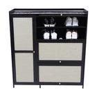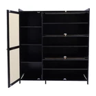 Specifications Material: Bamboo, MDF, Plastic Surface Treatment: Spray Painting Color: Black Style: Modern Shape: Rectangular Assembly Required: Yes Mount Type: Floor Mount Number of Doors: 4 Single-tier Load-bearing Capacity: About 5-7.5kg/11-16.5lbs Overall Product Size: 100*33*110cm/39.4*13*43.3in Right Single Compartment Size(L*H): 66*16cm/26*6.3in Left First-tier Compartment Size(L*H): 33*21cm/13*8.3in Second and Third-tier Compartment Size(L*H): 33*25cm/13*9.8in Fourth-tier Compartment Size(L*H): 33*26cm/13*10.2in Package Included 1* Shoe Cabinet 1* Glove 1* Screwdriver All Accessories for Installation WELCOME Description In our daily life, a neat and organized space can make us feel relaxed and happy. The feeling of coming home starts from entering the door and changing shoes. Look at our shoe cabinet made of high-quality bamboo and MDF. With its large capacity and elegant appearance, this item makes you feel warm, giving you a sense of pleasure and comfort from the moment you walk in the door. Key Features Build to Last: The shoe cabinet is made of bamboo, MDF, and plastic, and adopts a spraying paint process, which is hard, environmentally friendly, corrosion-resistant, and insect-resistant , ensuring a long service life. Neat Storage: The large-capacity shoe cabinet (39.4*13*43.3in) comes with storage compartments of different sizes, allowing you to categorize and store shoes of almost all sizes such as high heels, sneakers, sandals, and boots. The top platform can also be used to place some small potted plants, keys, or photos, making it a practical and stylish storage area. Organized Lifestyle: It cleverly integrates shoe storage into life, placing it at the doorway to store your messy shoes, making it pleasing to the eyes as soon as you open the door, bringing you an organized lifestyle. Strong Load-bearing Capacity: The premium materials, rectangular structure, and thickened legs allow the single tier to withstand up to 11-16.5 lbs without collapsing, giving you a piece of mind. Breathable Design: Unlike fully sealed shoe cabinets that tend to make shoes smell, our product adopts a mesh breathable design that prevents dust and helps ventilate the interior to avoid odors. Elegant Appearance: The sleek black finish and intricate mesh weave pattern create a touch of elegance and casualness. It blends well with a variety of interior styles, bringing stylish functionality and carefree aesthetics to your space. User-friendly Design: The strong magnetic design and the comfortable round door handle make it more convenient for you to open and close the door. Meanwhile, the right cabinet doors are designed with vertical upward flaps, which can be hovered at the highest point and also tucked in without taking up space. Assembly in a Breeze: Simple construction, pre-drilled holes, and complete accessories help you achieve a quick installation, you just need to make sure all parts are properly nested. Space-saving: The small footprint ( 39.4*13 inches ) and vertical flap door design make full use of the vertical space, thus it won't take up too much space for you. Effortless Cleaning: The smooth surface and simple structure allow for easy access to all its components and you can wipe it with a clean towel. It can effectively isolate dust, reducing the hassle of frequently washing shoes. Protective Package: To prevent the product from being damaged during transportation, we packed it with anti-collision foam and padded feet to protect your products to the maximum extent possible. Details Raised Baffle : The raised baffle can prevent items from falling off the countertop, and also allows you to hang an umbrella to achieve full utilization. Elevated Bottom: It facilitates cleaning and will not leave dead space. Application It is suitable to be placed at the door, living room, or bedroom and used to place slippers, casual shoes, high heels, boots, leather shoes, and other shoes, as well as some daily necessities such as keys, books, and umbrellas. It can be used as a bookshelf, TV cabinet, coffee bar cabinet, entrance cabinet, and storage rack. Specifications Material: Bamboo, MDF, Plastic Surface Treatment: Spray Painting Color: Black Style: Modern Shape: Rectangular Assembly Required: Yes Mount Type: Floor Mount Number of Doors: 4 Single-tier Load-bearing Capacity: About 5-7.5kg/11-16.5lbs Overall Product Size: 100*33*110cm/39.4*13*43.3in Right Single Compartment Size(L*H): 66*16cm/26*6.3in Left First-tier Compartment Size(L*H): 33*21cm/13*8.3in Second and Third-tier Compartment Size(L*H): 33*25cm/13*9.8in Fourth-tier Compartment Size(L*H): 33*26cm/13*10.2in Package Included 1* Shoe Cabinet 1* Glove 1* Screwdriver All Accessories for Installation Notes Bamboo products are made of natural materials, which will inevitably lead to different textures, knots, halos, gaps, and spots, but they will not affect beauty and use. Bamboo products should not be exposed to the sun, or in a dark, and humid place for a long time to avoid cracking, deformation, and mildew. Please note that the number of shoes that can be stored will vary depending on the size and height of the shoes. Please note that shoes, flower pots, and other items are not included. Please allow the slight color difference caused by the shooting light and 1-3cm error due to manual measurement, and make sure you do not mind before you order. Payment Delivery details Terms of sales About us Contact us Payment We accept ebay payment 。 Fees such as import duties, taxes are not included in the item price or shipping costs. These charges are the buyer's responsibility. Delivery details Shipping: 2-9 working days to: USA Terms of sales We maintain high standards of excellence and strive for hundred percent customer satisfaction. Feedback is very important to us. We hope that you contact us immediately before you give neutral or negative feedback, so that we can address your concerns. It is impossible to address issues if we do not know abou