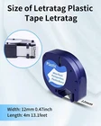 Product specification: Label tape for Dymo LetraTag 16952 , 91330 , 91 33 1 , 91332 , 91333 , 91334 , 91335 12mm Color: Black on Clear/White / Red / Yellow / Blue / Green MODEL: 16952, 91330 ,91331, 91332, 91333, 91334 , 91335 MATERIAL: Paper / Plastic letratag tapes (Replace Dymo letratag Paper / Plastic label tape) Width: 12mm (1/2 ") Length: 4m (13.12ft) Compatible for Dymo LetraTag printers: Dymo LetraTag LT-100H, Dymo LetraTag LT-100H Plus Dymo LetraTag LT-100T, Dymo LetraTag LT-100T Plus Dymo LetraTag LT-110T, Dymo LetraTag QX 50 Dymo LetraTag 2000 Dymo LetraTag XM Dymo LetraTag XR On Jun 18, 2024 at 15:46:22 PDT, seller added the following information: