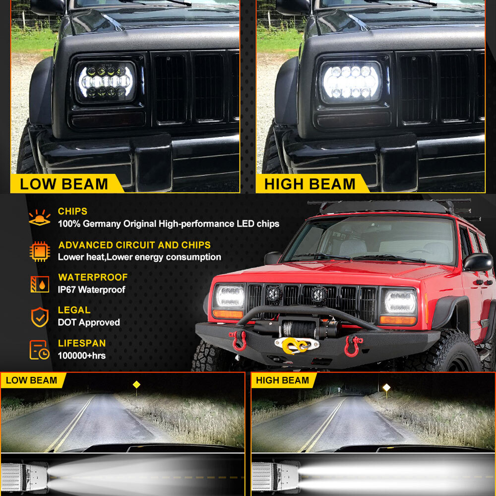 Package Included: 2 x 16-LEDs Tail Lights for Jeep Wrangler 2 x 5x7" 7x6" LED Headlights Fitment: Fit for Jeep Wrangler YJ 1987-1995 7x6" Headlight Specification: Product name : LED Headlight Material : Aluminum alloy housing, PC lens Housing color : Black Voltage : 12-24V Power : H/55W,L/30W Lumen : H/8250LM,L/4500LM Color Temperature : 6000K Waterproof : IP68 Beam Type : Running light / turning light / high beam / low beam Working temperature : -20°to 40° Lifespan : 50,000 hours Plug type : H4 Size : 19.5cm/7.68" x 14.1cm/5.55" ( L x W ) Tail Light Specification: Name: tail light Voltage: 12V Light source: 16LEDs 4 light modes: reverse light, tail light, brake light, turn light(Both lights flashing yellow at the same time indicate hazard light) Light color: white light, red light, amber light Location: rear Lens color: smoke black Note: 1. Due to manual measurements and slight color variations, please allow 1-3 cm (0.4-1.18 inches) difference to suit different display settings. 2. Due to the light and screen difference, the item\'s color may be slightly different from the pictures. Please understand.