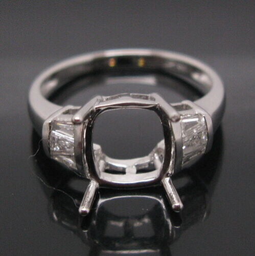 Store Home Item On Sell Save Sellers Feedbacks Semi Mount Rings Semi Mount Pendants Semi Mount Earrings Gemstone Rings Gemstone Pendants Gemstone Earrings Wedding Bands Others Product Description The Item: Metal Type: 14K White Gold Item Weight (grams): about 3.0 Metal Stamp: G14K US Size: 6.5 (Resizable) UK Size: M (Resizable) Natural Diamond: Diamond Carat Weight: 0.26ct Cut: Baguette Clarity: VS Color: G-H Center Stone: Will Fit 7x8mm Cushion Cut Stone (Accept customization) Payment @We accept PAYPAL Shipping @Free by UPS.DHL.FEDEX.EMS Available. @On average, the delivery will be 5-7 business day. International package delivery is complicated and delay may occur. @We will email you your tracking number once we process your order. All of our packages are safely insured. @We only send the item to the address provided by paypal/ebay. Returns @ NOT SATISFIED WITH YOUR PURCHASED PRODUCTS , 100% REFUND YOUR MONEY, AFTER THE ITEM IS RETURNED IN THE ORIGINAL CONDITION. @ You can return an item for any reason up to 30 days from receipt of the item.the value of the item only is refunded. You have to return any free offer items also. We donot return any money paid for shipping, sizing, or any other workmanship. We also refund on special orders or any ring re-size. @ items must be returned undamaged and in original condition. Custom Service We accept CustomDesign, Tailor-made for your gemstones. We can make the items according to your specifications. Any Custom Orders will take place through an eBay listing. We will list the item on eBay for you to purchase (as a custom listing). 1)Send us the design (picture or sample) which you are interested with your specifications, such as the metal purity, the shape and the measurement (in millimeter) of your stone, ring size and so on. You only need to pay $50 as deposit if you want to make this custom design project . 2) Our designers will finish the CAD graphic for you within 2 business days and we will send the CAD to let you confirm before we make the real item. After getting your confirmation, our professional jewellers will finish the custom jewelry for you within 10 business days. Unfortunately, if you are unwilling to continue the project after we send you the CAD graphic, $50 will be deducted from the deposit as the new mold fee. About Us Welcome to finejewel8!!! We are a professional jewelry manufacturer for many years, there are all kinds of jewelry here, diamond semi mounts, gemstone settings and gem-jewelry etc. We also do custom jewelry, offer professional services and good quality items!!!