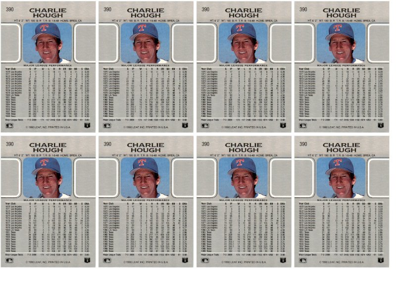 (8) 1990 Leaf #390 Charlie Hough Texas Rangers Card Lot Condition: NM-MT