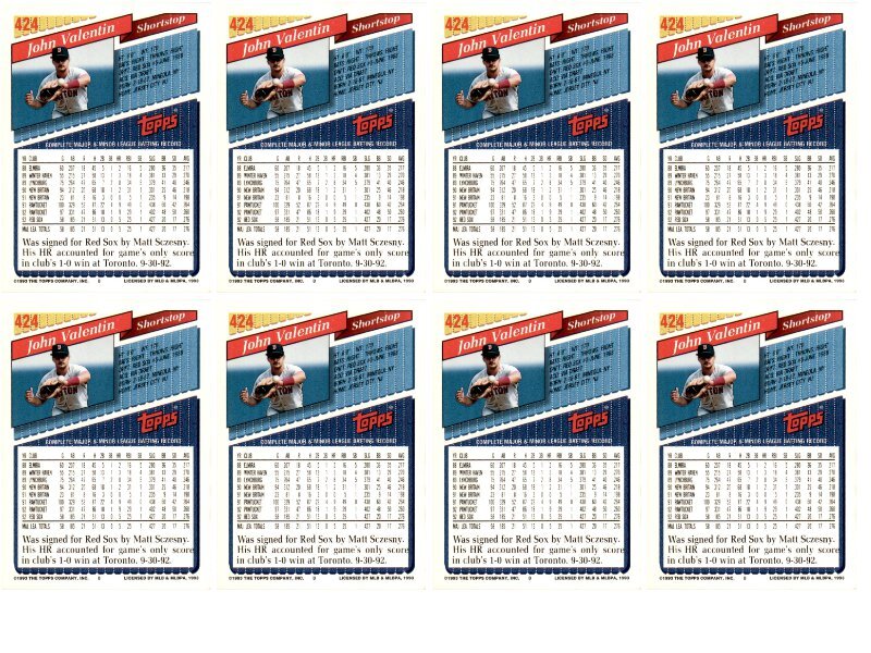(8) 1993 Topps #424 John Valentin Boston Red Sox Card Lot Condition: NM-MT