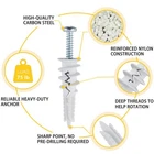 #8 Anclajes roscados autoperforantes para paneles de yeso de alta resistencia Features: ANCLAJES DE ALTA RESISTENCIA: Anclaje de plástico ranurado, más fácil de expandir, con mejor tensión en la superficie de contacto y mayor fuerza de fijación. Soporta hasta 34 kg y se usa comúnmente para colgar marcos de fotos, estantes, televisores, etc. MATERIAL DE CALIDAD: El material compuesto está compuesto de nailon de alta calidad y fibra de vidrio. Mejora la resistencia general y la resistencia a la tracción de los anclajes de pared, haciéndolos más resistentes y estables. Reduce la contracción, es antidesgaste y duradero. FÁCIL DE INSTALAR: Sin necesidad de taladrar previamente, usar un destornillador o un atornillador eléctrico, atornille fácilmente la punta afilada del anclaje para paneles de yeso con las dos ranuras del orificio en la placa de yeso. La rosca grande penetra profundamente en la superficie de fuerza para evitar que se caiga. Después de instalar el tornillo, la ranura se expandirá y agrietará. TORNILLO GALVANIZADO: Los tornillos de cabeza plana Philips están hechos de acero al carbono 1022A de alta dureza. Su superficie galvanizada gruesa previene eficazmente la oxidación y la corrosión de los tornillos de pared. ¡Consejos útiles! Este producto solo es apto para placas de yeso. Paquete de 60 piezas, una opción económica para cualquier proyecto. No se recomienda almacenar el kit de anclajes y tornillos para paneles de yeso en un lugar húmedo. Cierre la tapa inmediatamente después de usarlo para retardar la oxidación. SHIPPING We are always working hard to ensure your package arrives as soon as possible. Please understand that some factors like weather, high postal traffic, and the performance of shipping companies are outside of our control. We offer free shipping to the lower 48 states and ship within 3 business days of payment, usually sooner. We do not accept P.O. Boxes. Please provide a physical address.