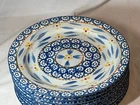 This item for sale is a set of EIGHT 8 inch salad/dessert plates in the blue Old World pattern by Temptations by Tara. They are in excellent gently used condition. No chips cracks stains or utensil marks I would say they would pass for new in my opinion. Please enjoy 12 pounds free insured shipping to your USA address Please check out our other items, we probably have what you need