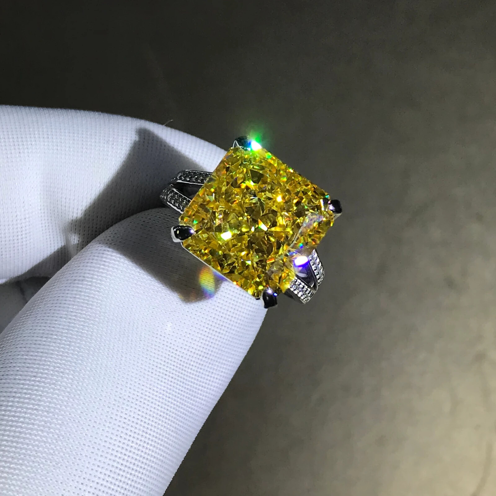 8 Carat Radiant Cut Moissanite Ring Vivid Yellow VVS 4 Prong Bead-set Split Shank ๐ Available Metals: A) 5X Platinum Vermeil, B) Solid 10K Gold, C) Solid 14K Gold, D) Solid 18K Gold, E) Solid 950 Platinum. โ HIGHEST QUALITY Certified White Gold, Rose Gold, Yellow Gold & 950 Platinum. (Not Trash). ๐ Ring Size: 2,3,4,5,6,7,8,9,10,11,12,13,14,15,16 and anything between these ring sizes available. It could be 1/4, 1/2, or 3/4. We Fit It to your Exact Finger Size no matter what size you want. ๐ Main Stone: HARDEST Quality VVS GRA Certified Hand Cut Moissanite (Pass Diamond Testers) โจ Side Stones: Premium Quality VVS Moissanite. (Pass Diamond Testers) ๐ Certified: GRA - GRC ๐ Polish: Excellent Polish. Shiny & Clean for Maximizing Sparkles. โฆ Cut: Hand cut Excellent cut & Symmetry with Crisp & Sharp Edges/Corners. ____________________ ๐ 100% Handmade with GORGEOUS & Accurate Details. Itโs an Art, not only a Valuable Material. ๐ 60 Days Money Back Guarantee for Any Reason even if you don't Fall In Love with it. ๐คฏ FREE LIFETIME Main Stone Warranty & Side Stone Replacement. (No Color Change). ๐ FREE LIFETIME Jewelry Cleaning & Re-plating. ๐ Hypoallergenic. Skin Friendly. Doesnโt cause any type of Allergies. ๐ Customizable with/to Your Favorite Stone/Jewelry Type & Shape. ๐ FREE STUNNING Random GIFTS On Every Order (we sell them for +$200 up to over +$700). ๐ฅฐ Amazing Wooden Gift Boxes for Your Main Jewel & its Gifts. ๐ฅณ Gift Wrapping Available (we wrap with no tags or receipts, ready to present). ๐คฉ VIP Customer Service to Make Your Dreams Come True in the Most Fantastic Way. ๐ FREE SUPER FAST FedEx Express Shipping. ____________________ ๐โ + Our 5X Platinum Vermeil: Platinum is 9.4 times RARER & slightly more DURABLE than gold. Rings with platinum end up more EXPENSIVE than gold because the DENSITY of platinum is a lot HIGHER and the QUALITY is EXTREMELY PURER. Rings THICKLY plated FIVE TIMES with platinum offer MUCH STRONGER PROTECTION against wear and scratches than gold plated jewelry. Therefore they LAST the LONGEST while giving you a SHINY LOOK ALL THE TIME. ๐โ + Our Rare Stone Quality: Here you have the NATURAL looking color of the diamonds in a RARE size with extraordinary VVS1 clarityโฆ Weโre offering the GREATEST QUALITY and VALUE at the BEST PRICE with this design by using very SPECIAL types of GRA Certified Moissanite stones. Natural diamonds in this color, clarity and size are super rare and very hard to find. Some of them easily cost over $10,000 per carat. (please message me for natural diamonds like this color, size and shape so I can give you the accurate price based on your preferences) ____________________ ๐ข๐๐ FREE FAST EXPRESS SHIPPING Processing + Shipping = Receiving Time PROCESSING: Only 1 available. This ring will be shipped within 48 hours. (Other sizes require customization for 2-3 weeks. ) SHIPPING: 2-6 days via FedEx Express for FREE โ Youโll get updated with the tracking code, once your package is shipped. โ We ship with insured FedEx only which is very secure. โ An adult signature is required at the time of delivery. _____________________ โ๐๐ CUSTOMIZATION/PERSONALIZATION: Custom orders with me are SUPER EASY & COMFORTABLE, no matter if youโve never done it before or youโve done lots of them. ๐ค I break down everything into small steps. And we go through the steps one by one together. On each step, youโll get to pick or guide me from the options I represent. ๐ Once we get to the end, your dream comes true. ๐คฉ๐ Because every single detail is just exactly what you want. ๐๐ ๐จ HOW TO DESIGN YOUR RING: A โ Send me some/one image similar to your idea. Or tell me whatโs your favorite shank, profile or stone? So I can show you some options to choose from. B โ Next, I will start designing it right away. Iโll send you some screen shots from what I designed. We can adjust any part of it together, until itโs exactly the way you want it to be. C โ After we get to the ideal conclusion, Iโll render several Ultra High Quality 3D images and a 4K video, so you see what the end result is gonna look like in reality. D โ The moment you approve everything, we start making it. Once itโs finished, weโll ship it the same day. + 3D IMAGE SAMPLES: Before you order yours, you can ask me for some samples of the 3D rendered images and videos. Youโre gonna absolutely love the quality, because they look like real rings. ๐คฉ๐ + Designing your dream ring with me is gonna be a fantastic experience. While you just sit and order, youโll watch how I take care of everything from your idea to the end product in the SIMPLEST & GREATEST way possible.โ โ------------ ๐ AVAILABLE GEMS: All stones are available - Colorless & Colorful Moissanite or Simulated Moissanite. Natural & Lab Grown Diamonds in Colorless or Colorful. Natural and Lab made Emerald, Ruby, Sapphire, Amethyst, etc. Just ask! ๐ฅ AVAILABLE METALS: All metals are available - 925 Sterling Silver, 5X Platinum Vermeil, 9K Solid Gold, 10K Solid Gold,14K Solid Gold, 18K Solid Gold (in Rose, White or Yellow), Platinum 950. ๐ AVAILABLE MATCHING PIECES: We can make matching pieces for this product. Engagement Rings, Bridal Sets, Wedding Bands, Earrings, Studs, Hoops, Bracelets, Bangles, Necklaces, Pendants, and anything youโd dream of. We can design all to set with this item. ๐จ๐จ๐ง๐ฆ AVAILABLE OTHER JEWELRY: We make jewelry as per occasion and celebration like birthdays, birth months, anniversaries, motherโs day, valentine's day, fatherโs day, memorials, thanksgiving, zodiac signs, graduation days, and many more per your request. ____________________ โโโโโ 5 STAR PRISTINE PROMISES: โฆ๏ธ 100% Satisfaction Guaranteed โฆ๏ธ Ethically Sourced โฆ๏ธ FREE Lifetime Ring Resizing โฆ๏ธ FREE Complimentary ENGRAVING โฆ๏ธ