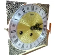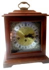This 8-day Ridgeway Westminister Chime Bracket Clock is an eight day clock measuring 14 x 10 inches, with a 6 inch diameter roman numeral dial. It has chimes on each quarter hour, and also strikes the hours on the hours. The clock features a brass signed Hermle 2 jewel movement with a Westminister chiming sequence on each quarter hour and an hour gong strike. The clock is signed by the Ridgeway Clock Company, USA, and has a german signed Hermle Chiming Bracket Clock. It is an original piece manufactured in Germany. The clock is perfect for any room in your home, including the foyer, home office/study, guestroom, hallway, and dining room. It is selling with NO Reserve. If you are a collector, then make the adjustments on the striking, and have a wonderful clock throughout. Shipping is $65 within the contiguous USA. Good luck on the bidding. (4j31)
